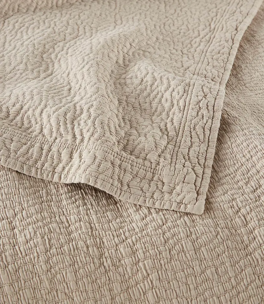 The Mia Coverlet is exquisitely crafted in Portugal to bring a touch of European elegance to your bedroom. Immerse yourself in the sublime softness of garment-washed fabric, offering a cozy and inviting layer for a restful night's sleep. Choose from three versatile neutral colors, each exuding a timeless charm that effortlessly complements any décor style.