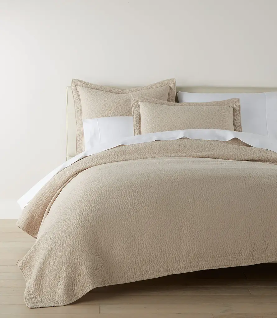 The Mia Coverlet is exquisitely crafted in Portugal to bring a touch of European elegance to your bedroom. Immerse yourself in the sublime softness of garment-washed fabric, offering a cozy and inviting layer for a restful night's sleep. Choose from three versatile neutral colors, each exuding a timeless charm that effortlessly complements any décor style.