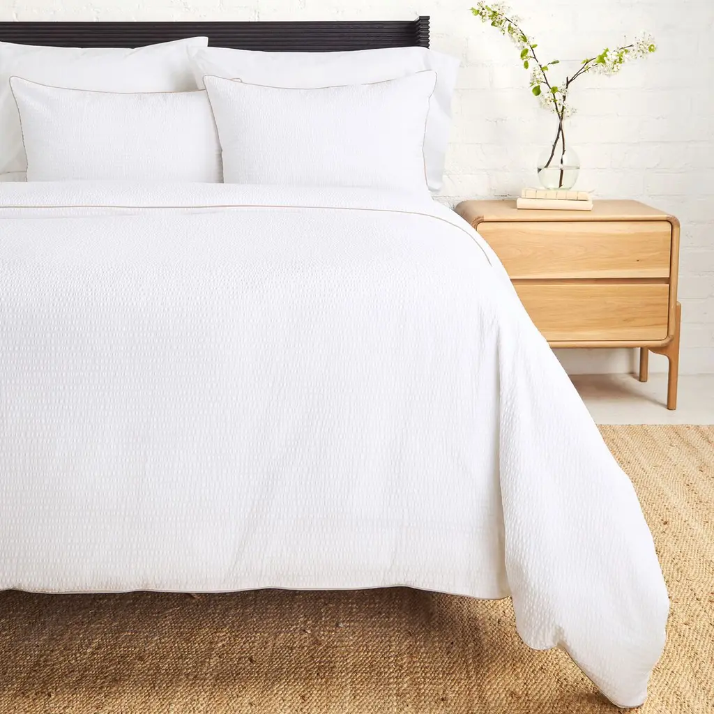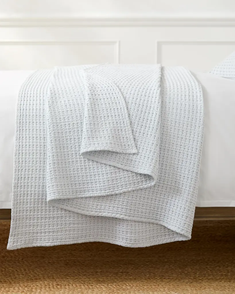 A gauzy waffle weave. Ultra-fine yet snug. A light touch on balmy nights, or an extra layer when it’s cold.