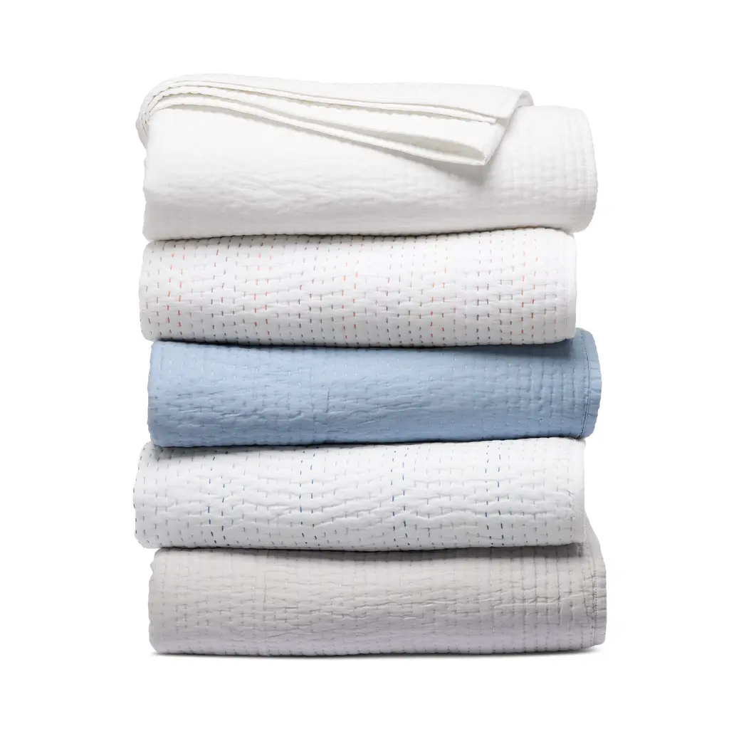 Bring subtle texture to any bedroom with the Pick stitch coverlet sets from Sky, featuring a hand-quilted design and with touches of colored thread.