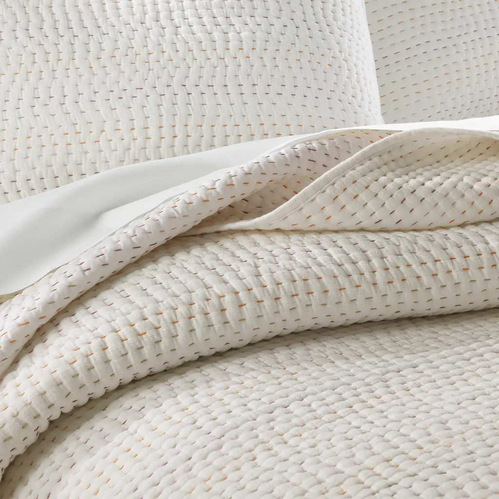 Bring subtle texture to any bedroom with the Pick stitch coverlet sets from Sky, featuring a hand-quilted design and with touches of colored thread.