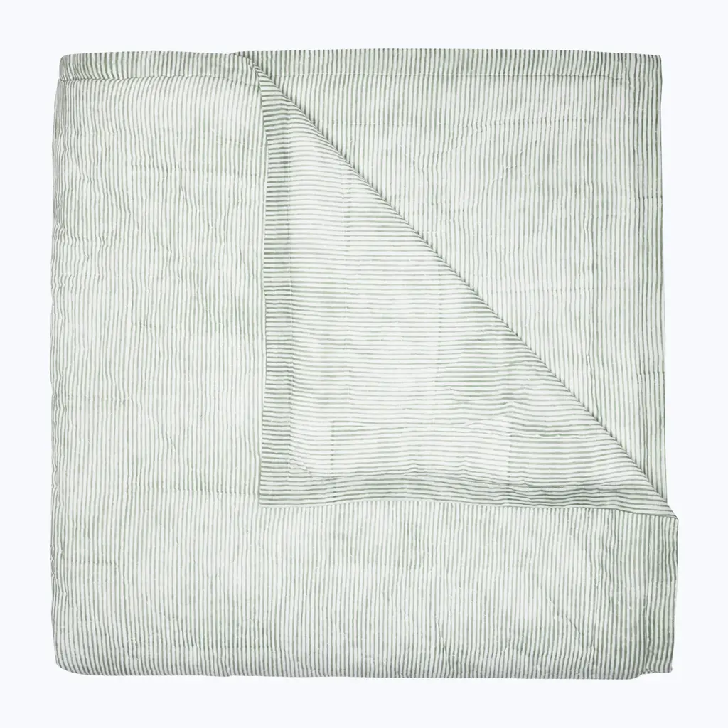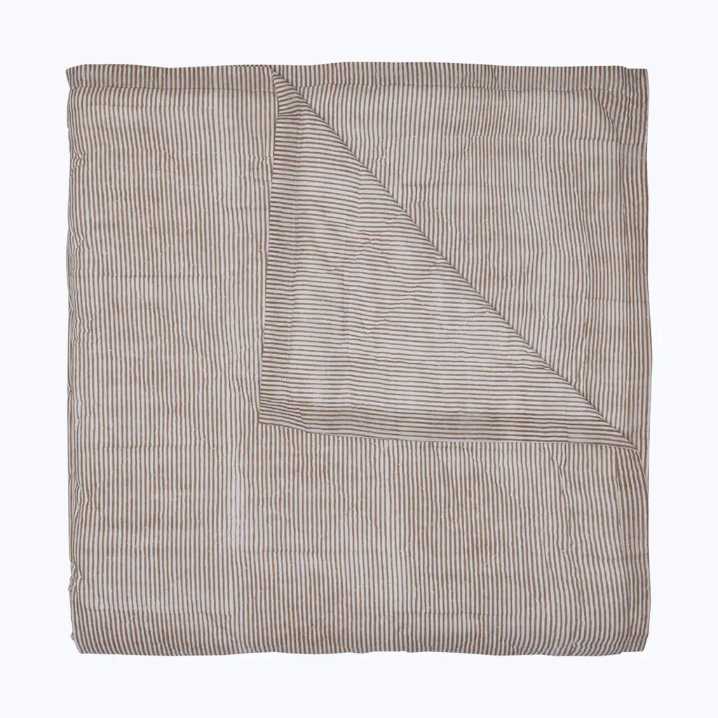 Discover the Nandi Coverlet by John Robshaw. Printed on pure cotton voile, the Nandi Coverlet conveys the timeless allure of stripes. Infused with movement, the Nandi’s striped pattern has an organic feel reminiscent of hand drawing. Crafted in India. Available in Coffee and Sage hues, as well as Twin, Queen, and King sizes. Known for his beautiful blend of old-world traditions and new-world style, John Robshaw creates exquisite textiles inspired by traditional Indian prints and a centuries-old woodblock printing technique. Dying, printing, and experimenting alongside artisans to create his unique fabrics, John Robshaw helps preserve traditional block printing, hand-stitching, hand-painting, and hand-quilting in India.