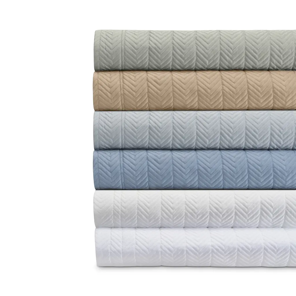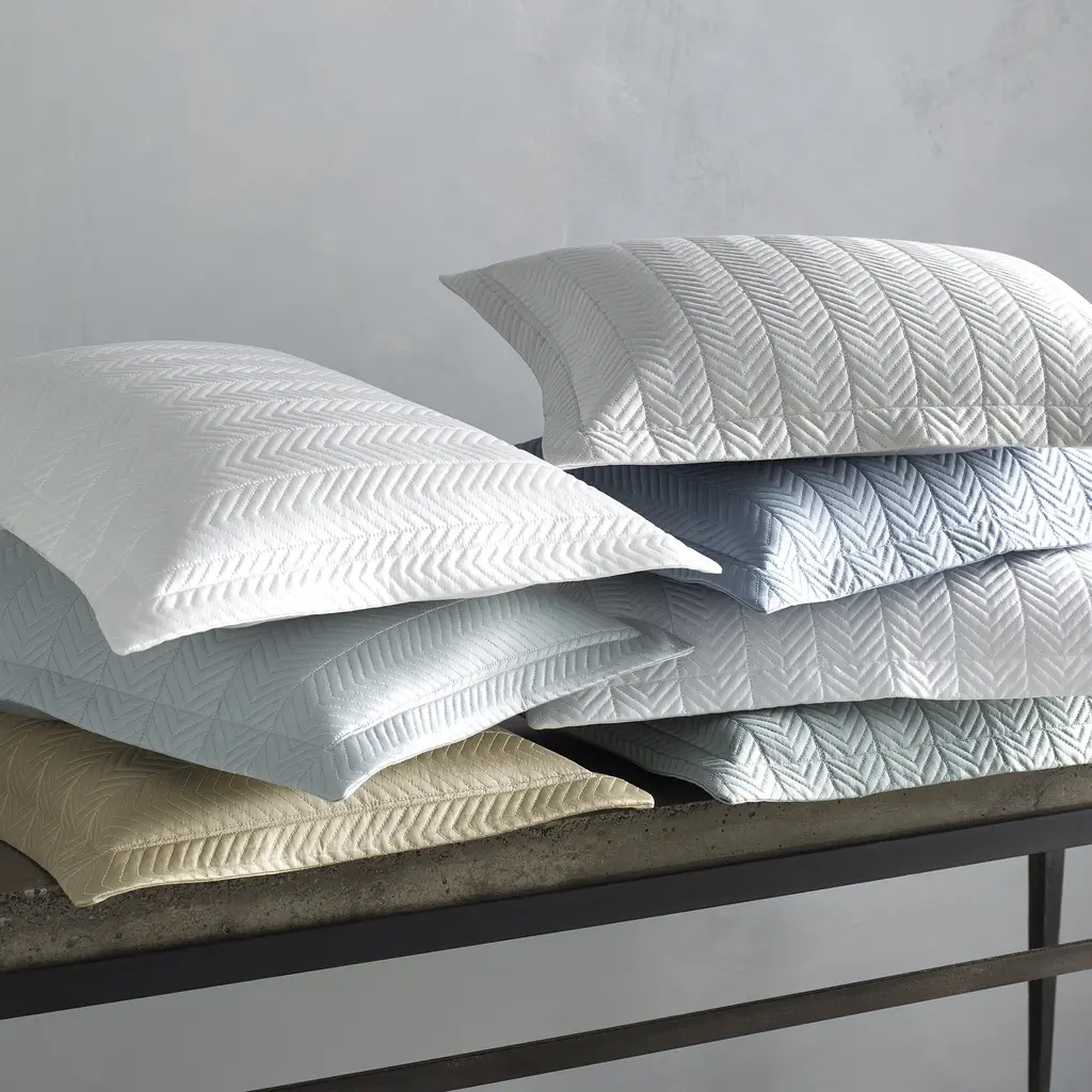 A new twist on a traditional quilt pattern, the Matouk Netto Quilted collection boasts a design of paneled chevron rows. Crafted in sumptuous Giza Egyptian cotton sateen, the coverlet and shams layer perfectly with any bedding for a luxurious experience.