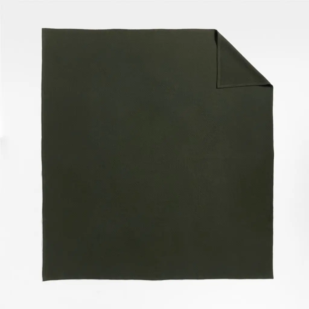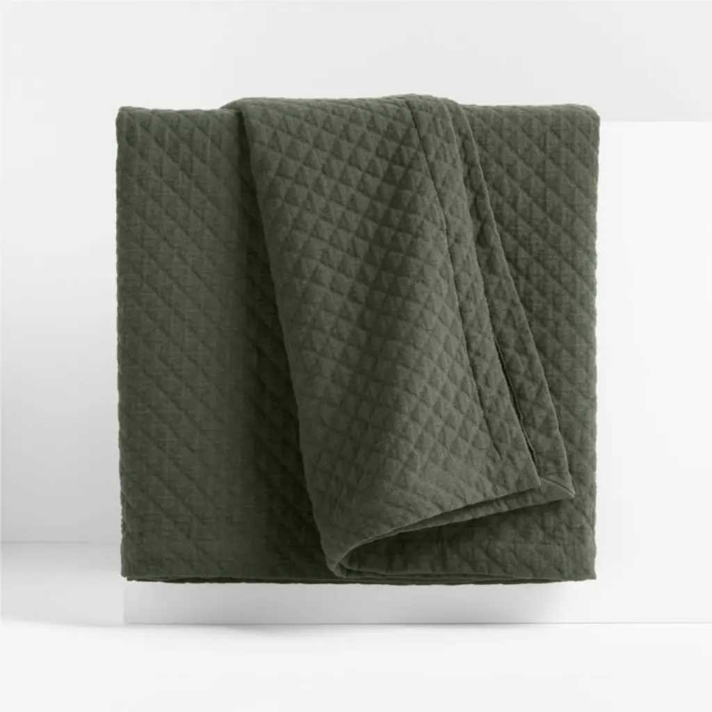 Dainty diamonds texture our coverlet with a subtly vintage look and soft handfeel. Organic cotton weaves the elegant yet durable bedspread, and the dark green-grey serves as a sophisticated neutral. Create a relaxed, layered look by making the bed with a mix of our exclusive matching and coordinating bedding in the deep hue we call Ficus Green.