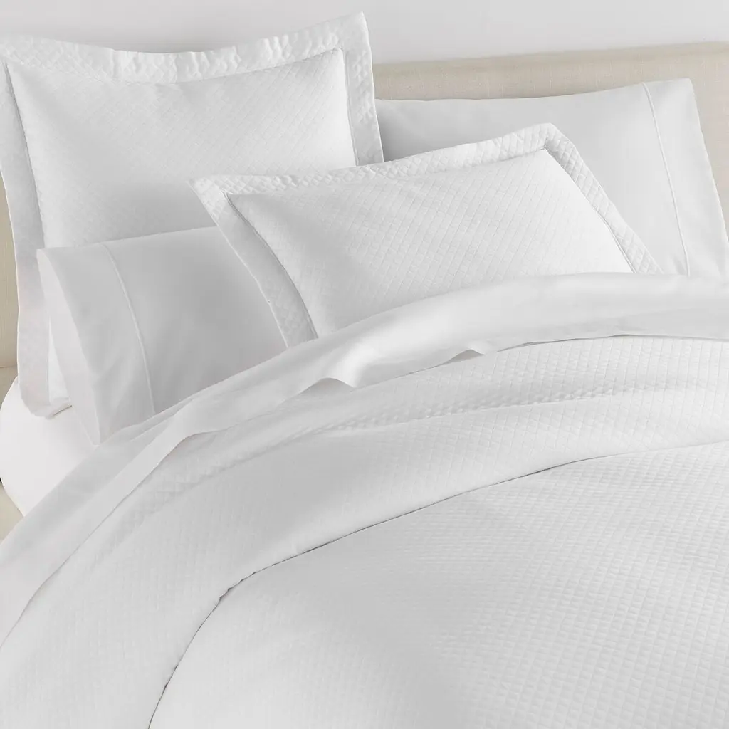 Oxford, our diamond quilt pattern matelassé, brings a look that is sure to please. Its classic styling will pair with just about anything in your master retreat. Coverlets are constructed with a 2" flange on three sides and a 1" hem on the top side.