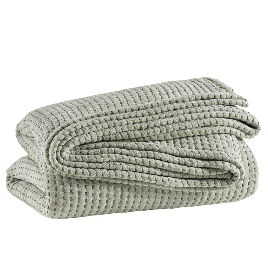 Precisely crafted parallel lines of white pick stitches make a graphic juncture with the black matelassé weave. This lofty, lightweight all-cotton coverlet is meticulously woven to have pockets of warmth that deliver extra nighttime insulation. An all-season essential to layer on the bed as needed. Reverses to same look and feel as the front.