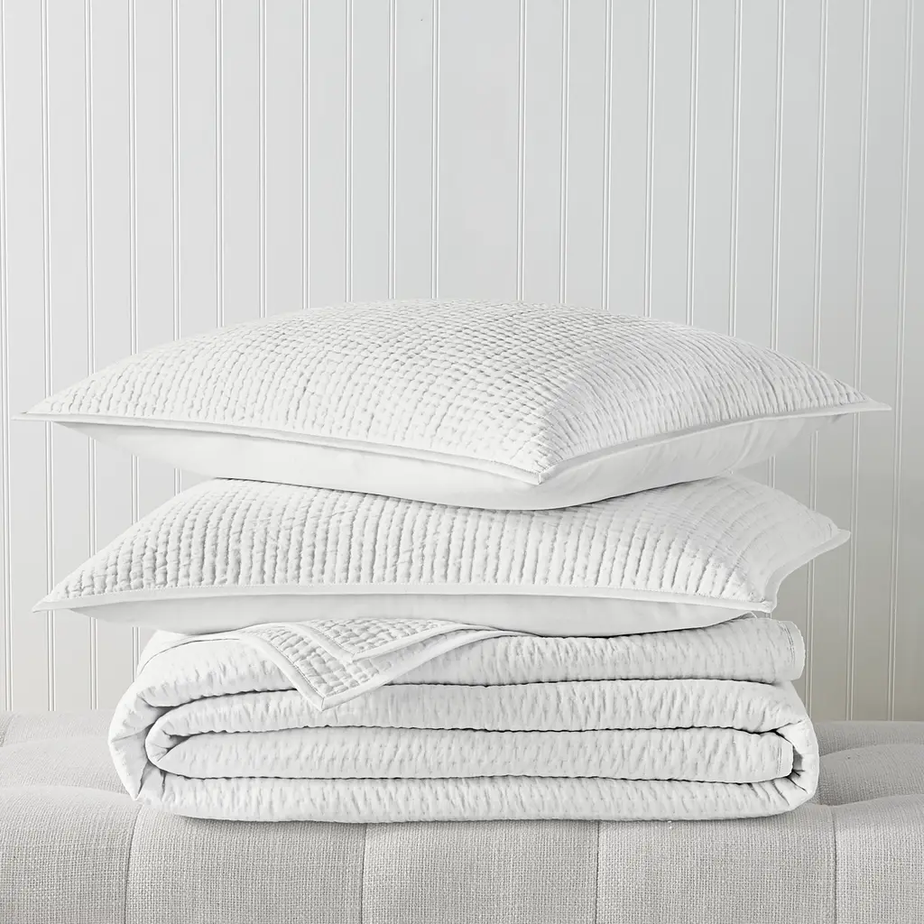 Bring subtle texture to any bedroom with the Pickstitch coverlet sets from Sky, featuring a hand-quilted design.