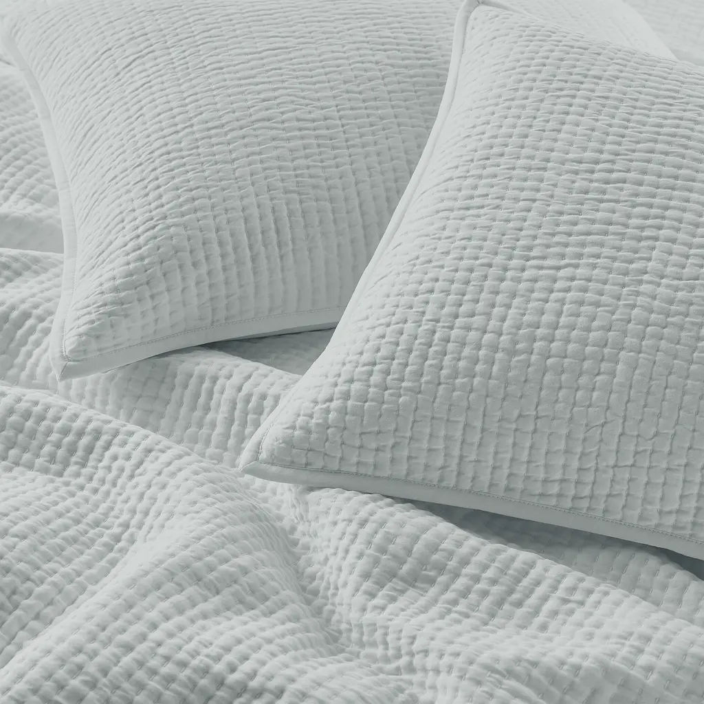Bring subtle texture to any bedroom with the Pickstitch coverlet sets from Sky, featuring a hand-quilted design.
