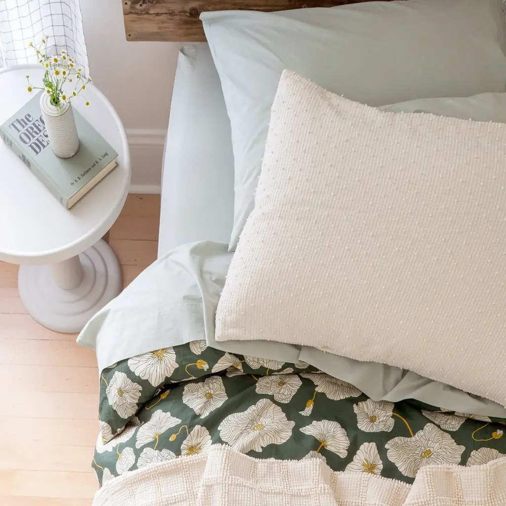 Nostalgic with a modern twist, this versatile collection of coverlets and shams owes its coziness to a 100% cotton tufted loop construction. Made using traditional techniques by a family-owned textile factory in New England with over a century of popcorn chenille weaving expertise. A Schoolhouse Exclusive.
