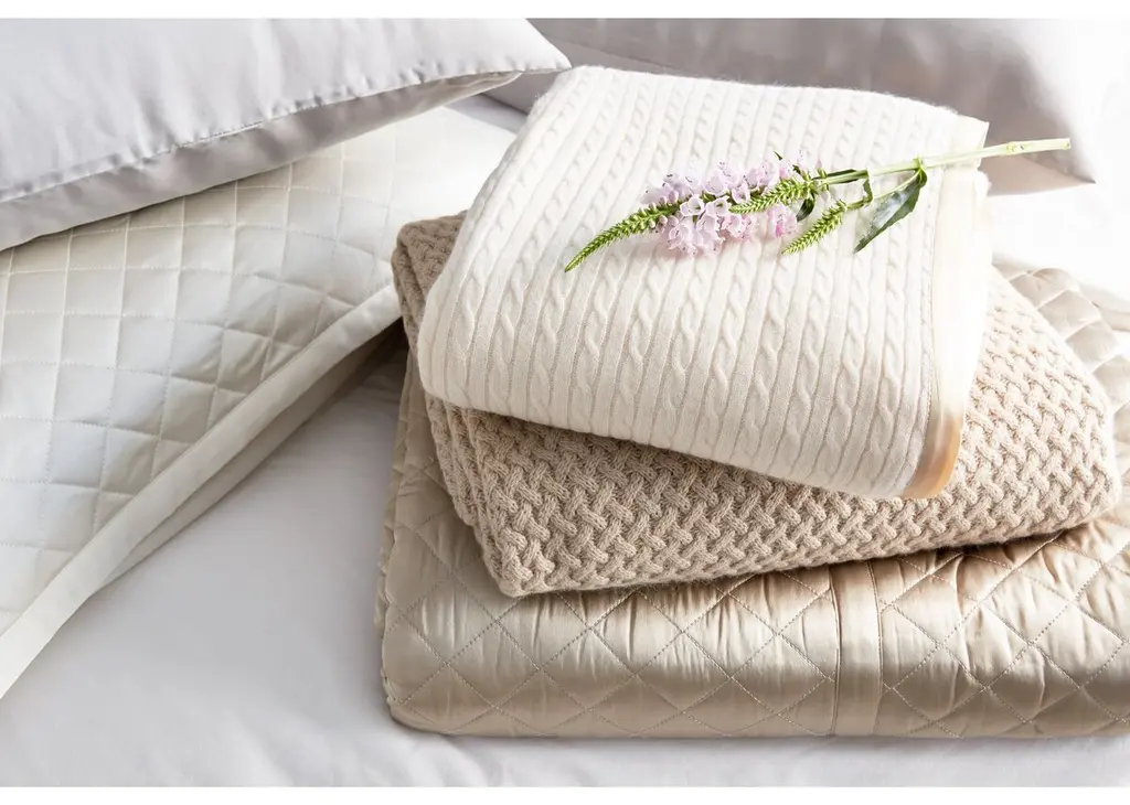 A diamond quilting pattern adds a delightfully textural touch to the soft, smoky gray hue of this silk-and-cotton-backed silk charmeuse coverlet. Poly-fill batting. Imported.