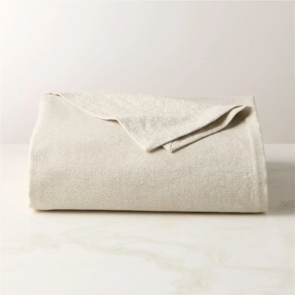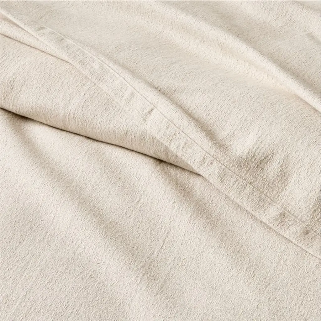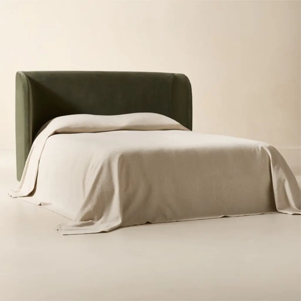 Woven from a luxurious organic cotton-linen blend, this oversized coverlet is defined by its rich, tactile texture that celebrates the inherent beauty of its natural fibers. Finished with a minimal hem and mitered corners, it offers a serene look that effortlessly elevates the bedroom. CB2 exclusive.