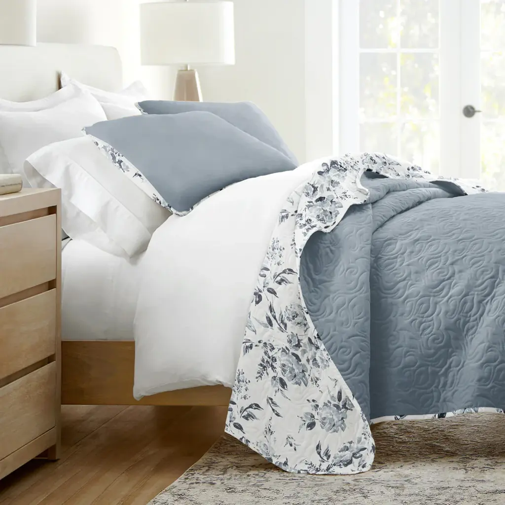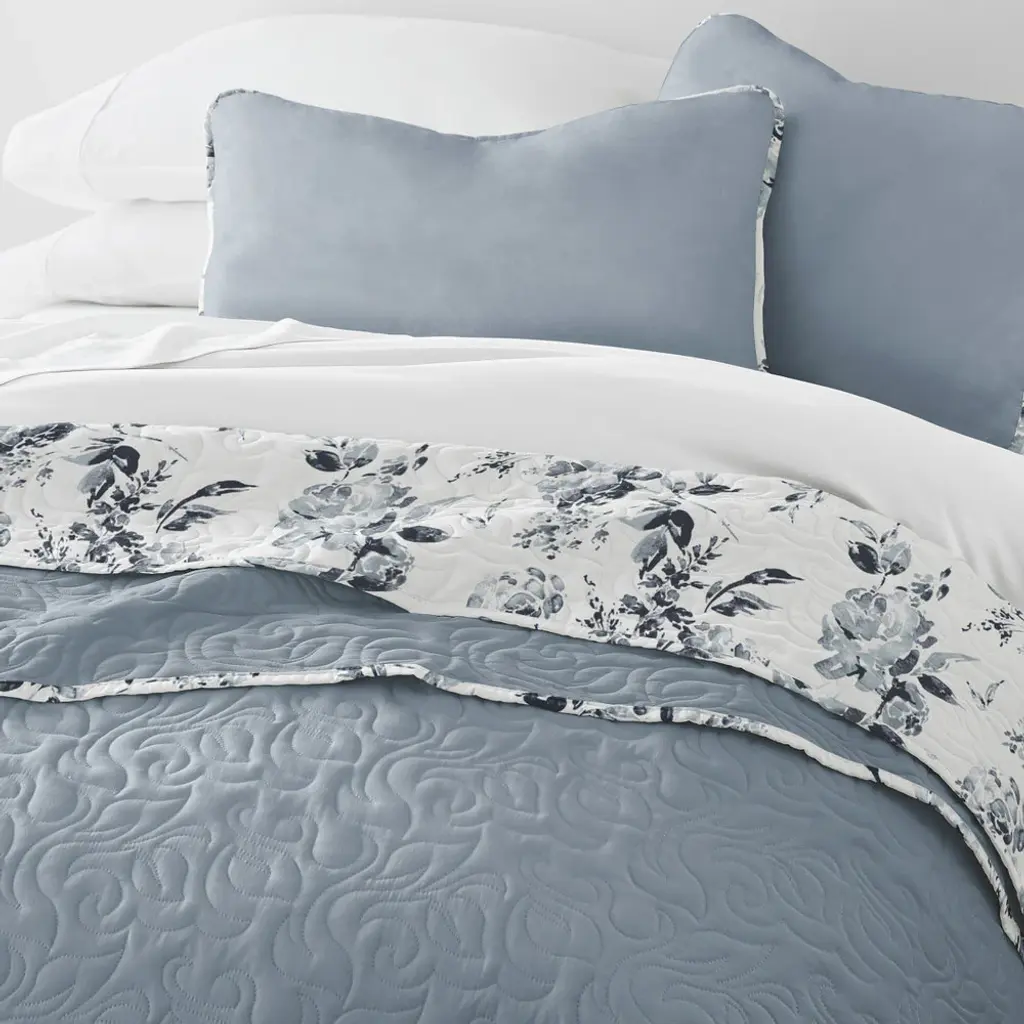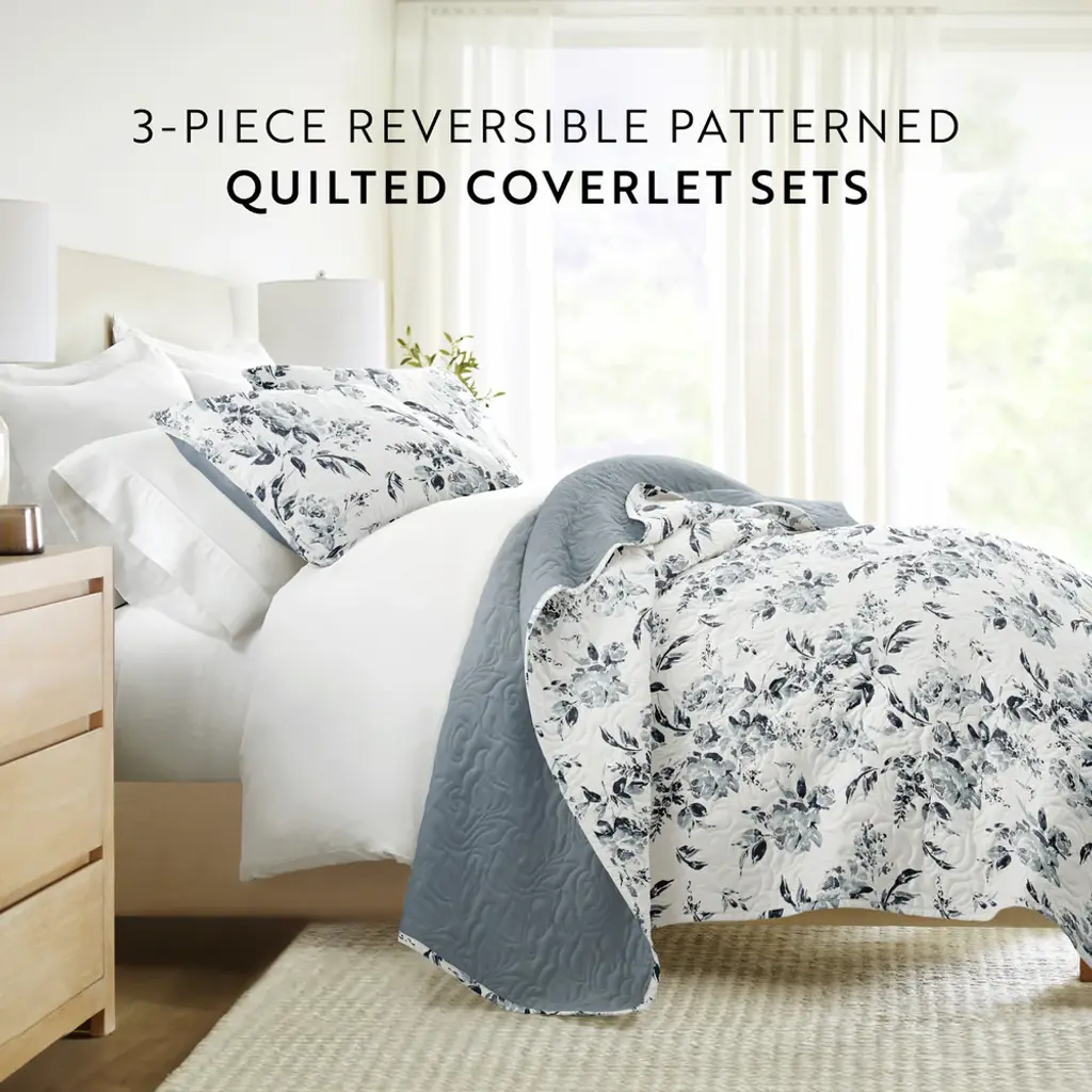 Rose Garden Reversible Quilted Coverlet Set