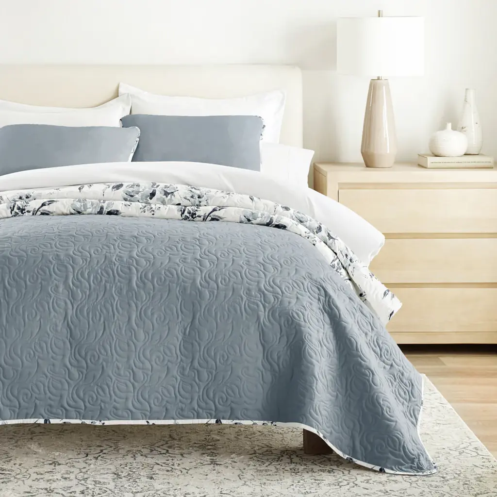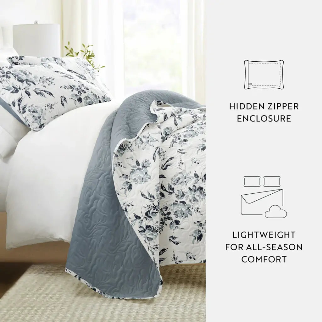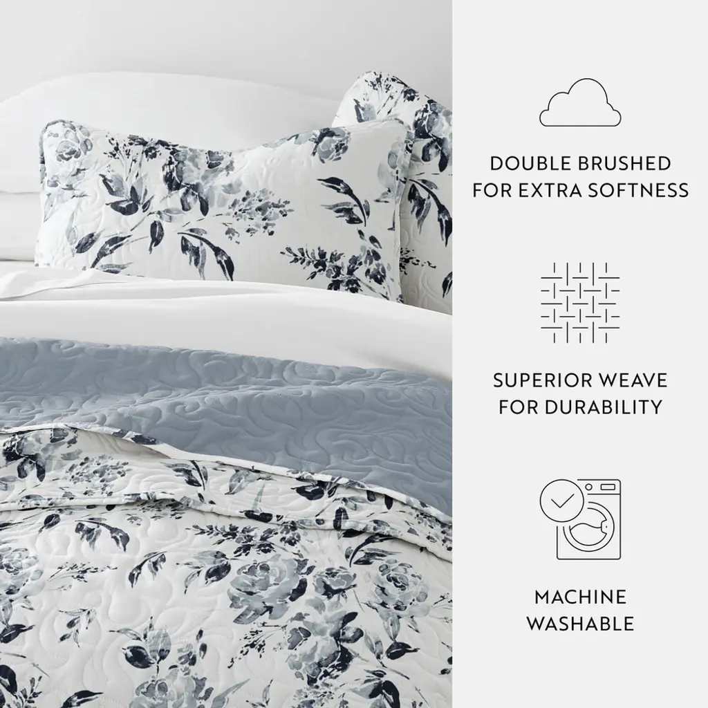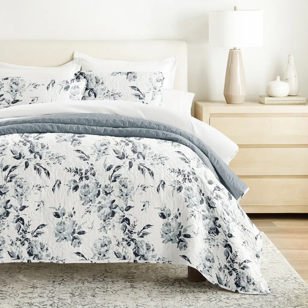 Rose Garden Reversible Quilted Coverlet Set