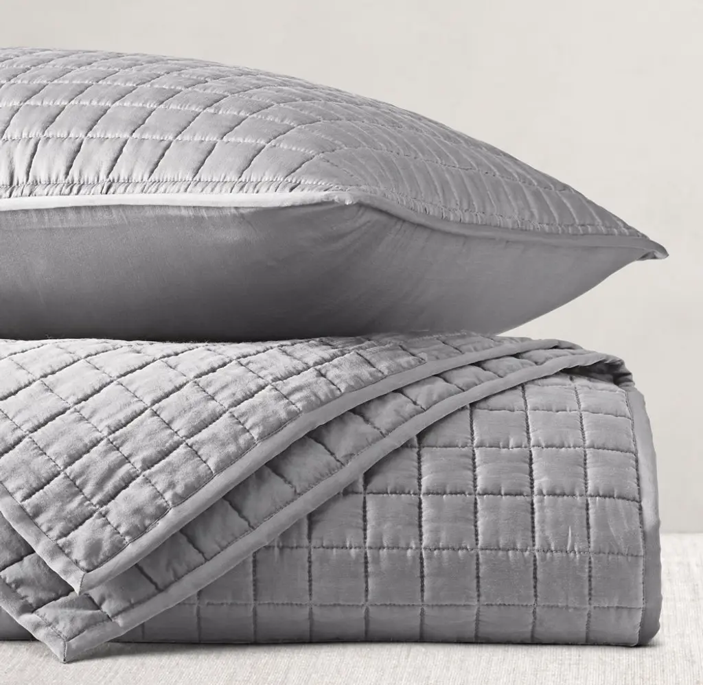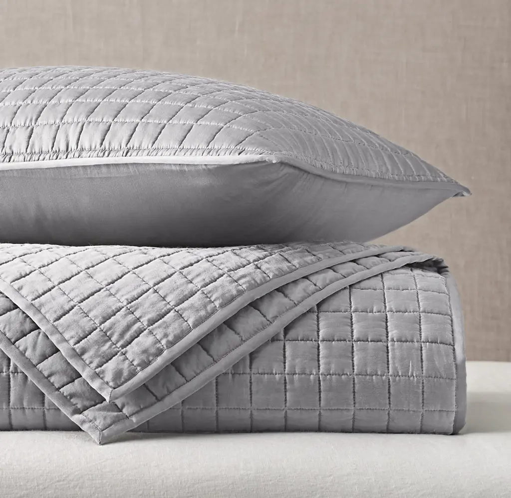 FREE SHIPPING Our quilted bedding begins with the luxurious feel of pure silk, warmed with a light layer of cotton. Square box-stitching adds definition and contemporary appeal.