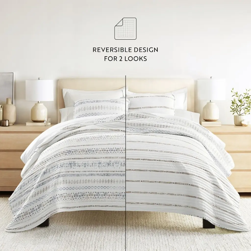 Give your room a comfy new addition with this super soft reversible microfiber quilt and sham set. We've generously filled it with artificial down, and each piece is double brushed to give it that super soft, cozy feel. The beautiful, subtle quilted stitchings add dimension and a gorgeous touch to any bedroom. Spun from our premium yarns, this set is twice as strong as cotton, wrinkle resistant and a perfect option for those with allergies or sensitive skin. The reversibility gives each side its own unique look. Available in a variety of beautiful designer patterns, making it easy to refresh any bedroom.