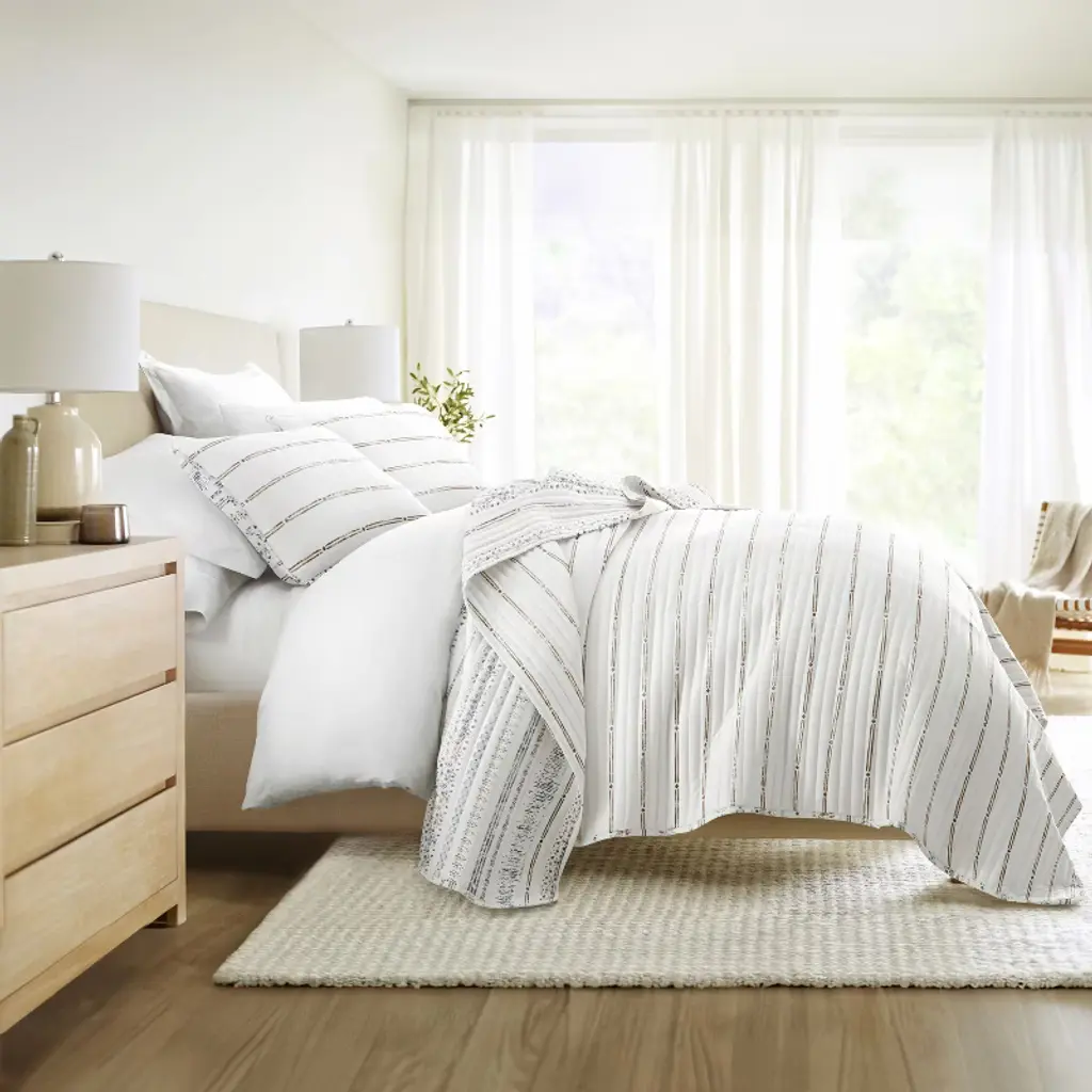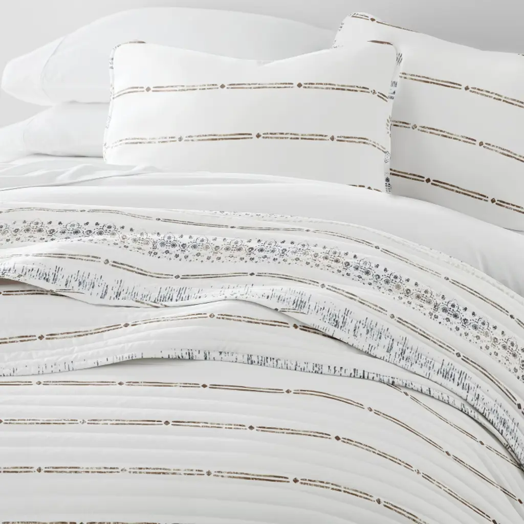 Soft & Cozy Quilt Set – Lightweight All Season Coverlet In Relic Stripe Design By Becky Cameron, Relic Stripe Taupe, King/california King