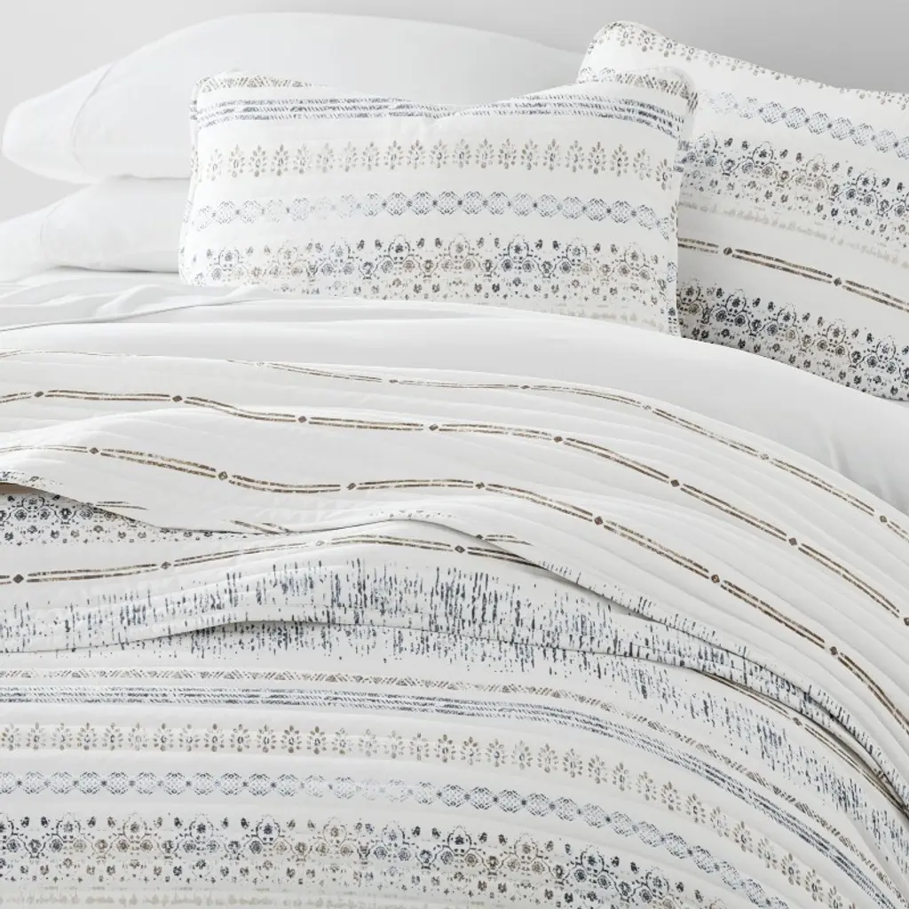 Give your room a comfy new addition with this super soft reversible microfiber quilt and sham set. We've generously filled it with artificial down, and each piece is double brushed to give it that super soft, cozy feel. The beautiful, subtle quilted stitchings add dimension and a gorgeous touch to any bedroom. Spun from our premium yarns, this set is twice as strong as cotton, wrinkle resistant and a perfect option for those with allergies or sensitive skin. The reversibility gives each side its own unique look. Available in a variety of beautiful designer patterns, making it easy to refresh any bedroom.