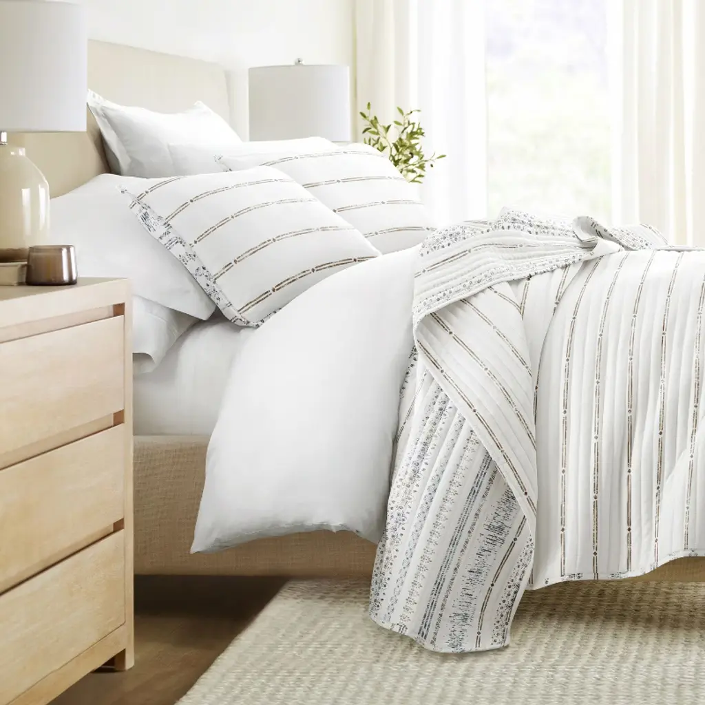 Soft & Cozy Quilt Set – Lightweight All Season Coverlet In Relic Stripe Design By Becky Cameron, Relic Stripe Taupe, Twin/twin Extra Long