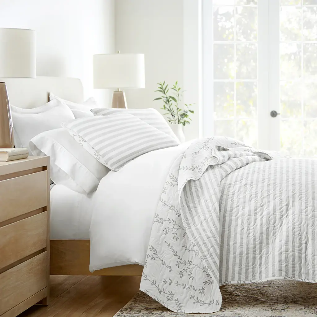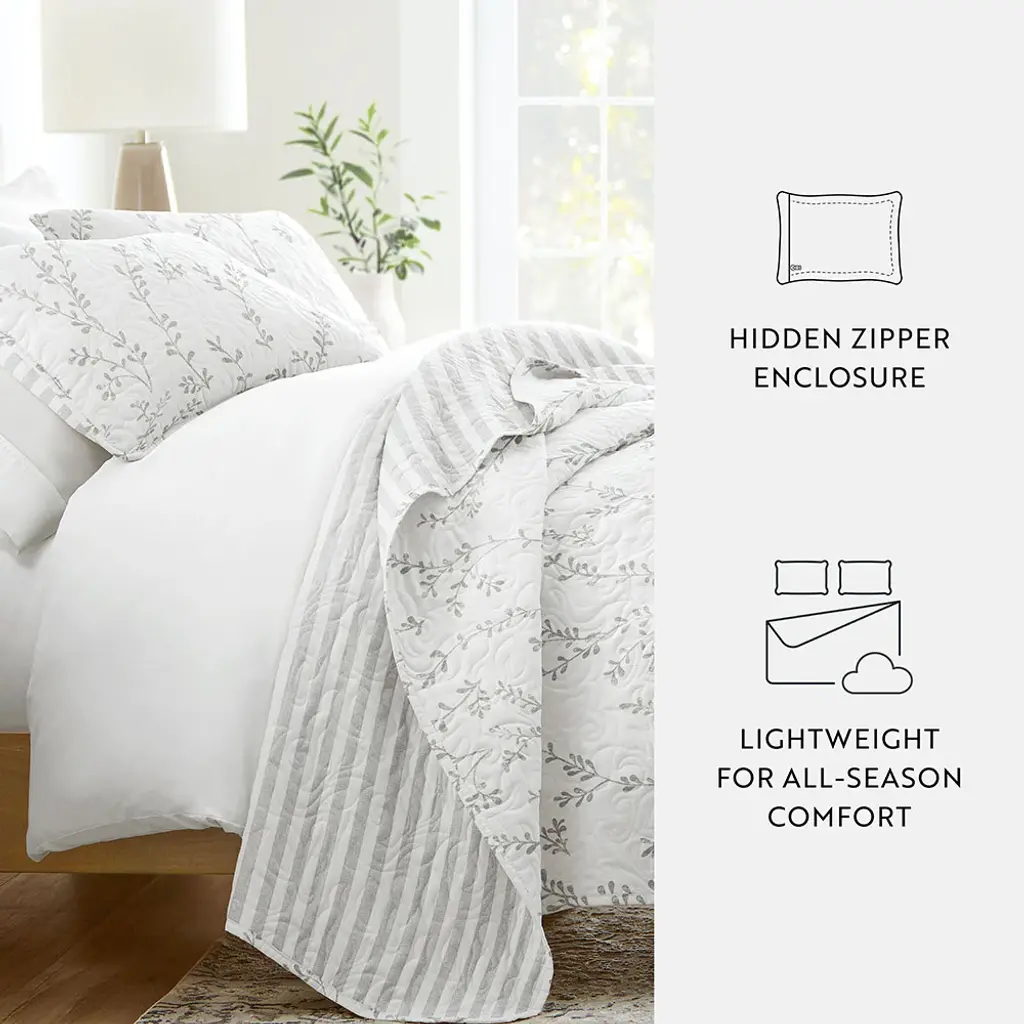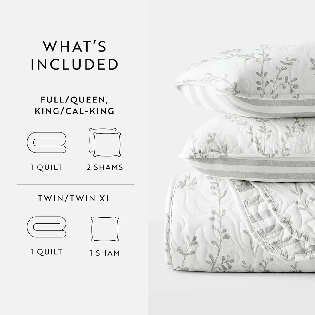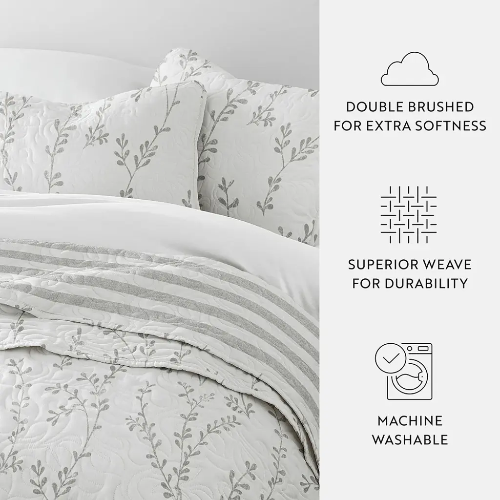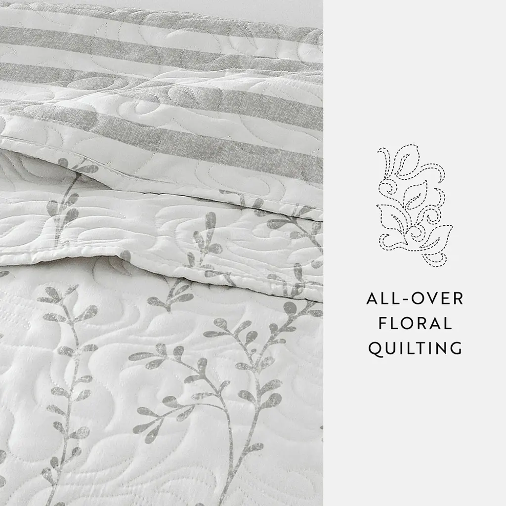 Sprouting Vines Stripe Reversible Quilted Coverlet Set