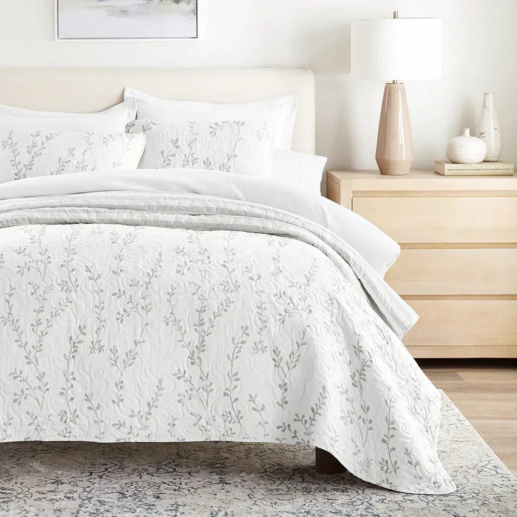 Sprouting Vines Stripe Reversible Quilted Coverlet Set