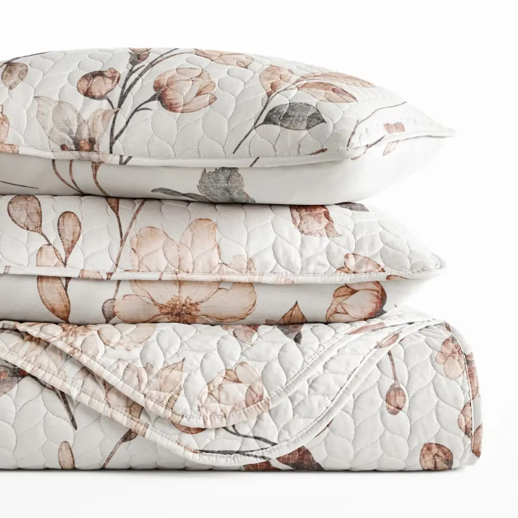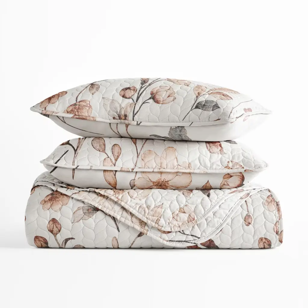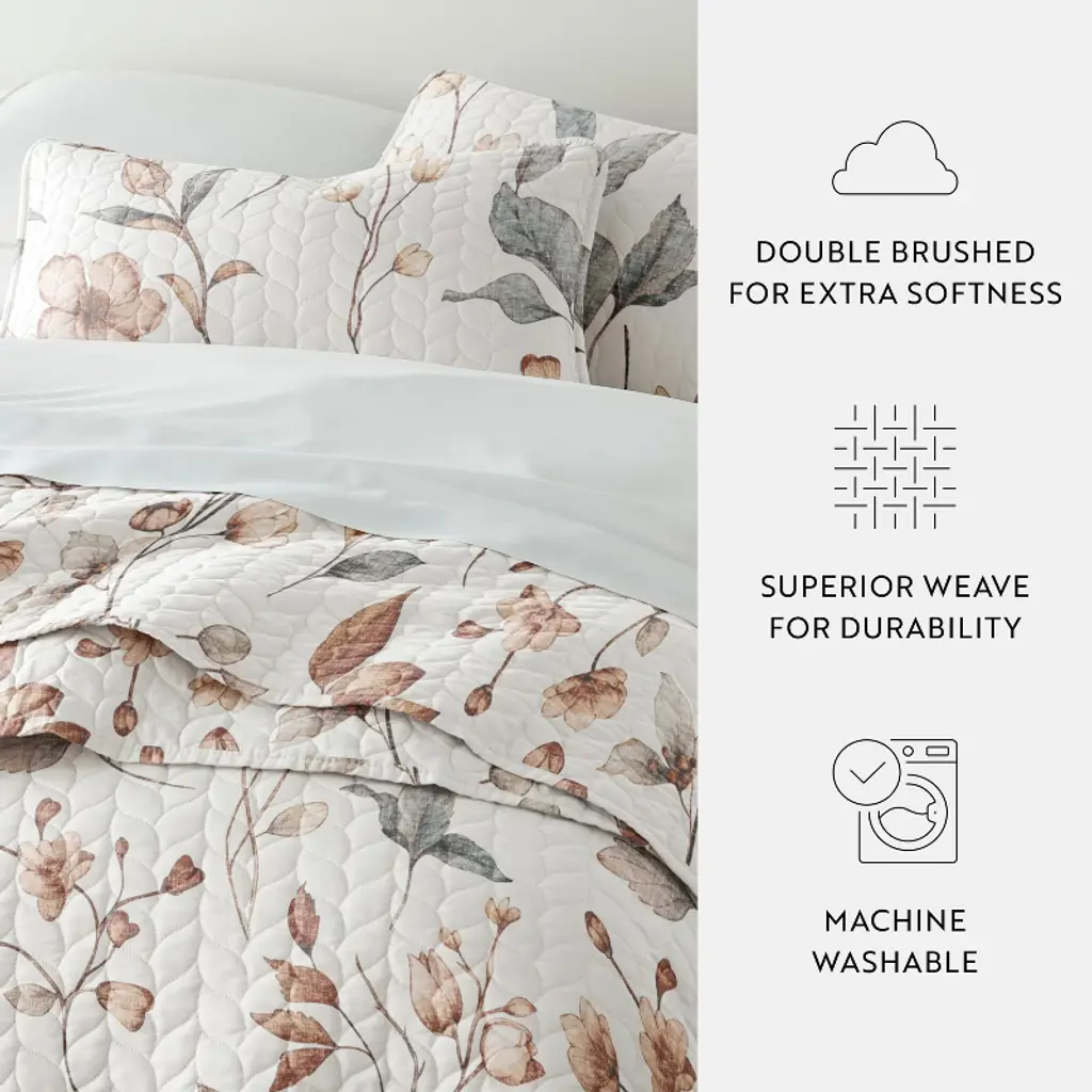 Ultra-soft Quilt Set – Lightweight Microfiber Coverlet In Russet Floral Pattern By Becky Cameron, Russet Floral Natural, Full/queen