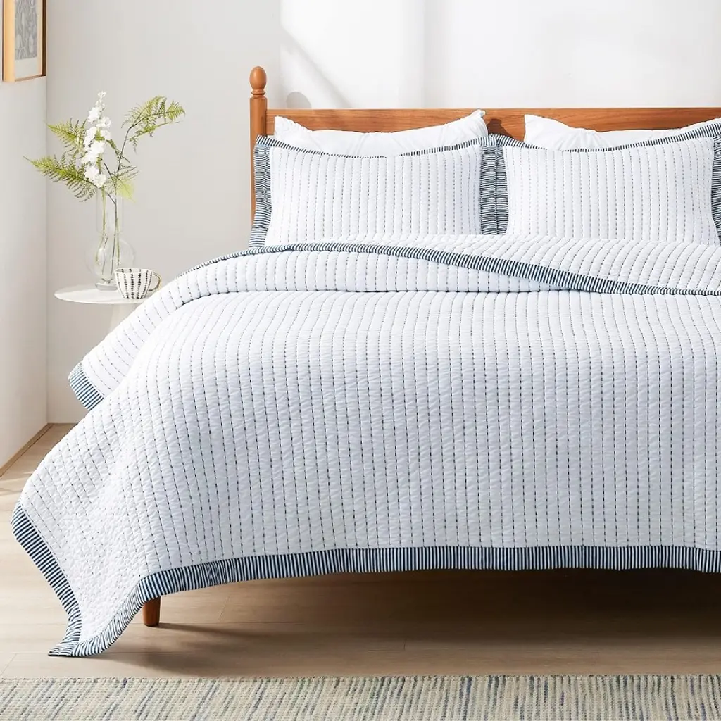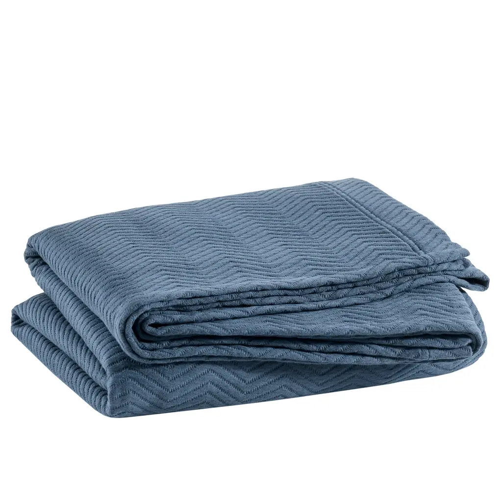 Horizontal chevrons bring a geometric update to this versatile, 100% cotton matelassé. The densely woven, traditional construction mimics finely quilted handwork. The result? A lightweight, luxurious layer that easily transitions through all the seasons. Made on traditional looms in a centuries-old mill in Portugal.