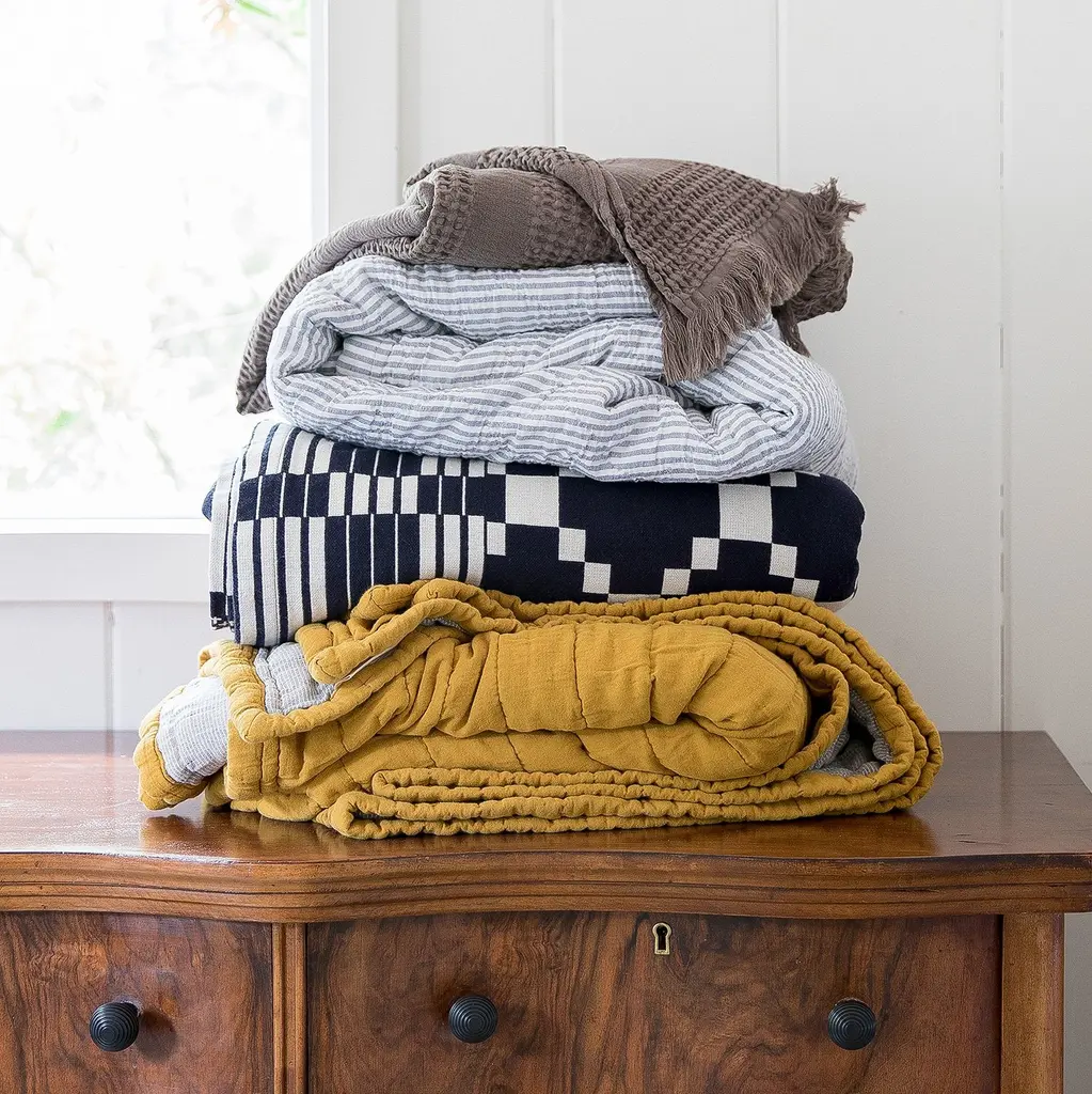 Inspired by a treasured vintage weaving from the early nineteenth century, this heirloom-quality coverlet is crafted from yarn-dyed cotton. A traditional float weaving technique gives it graphic color contrast and geometric patterning, while making it a comfortable weight for layering with other pieces throughout the seasons. Mix and match it with any of our bedding collections.