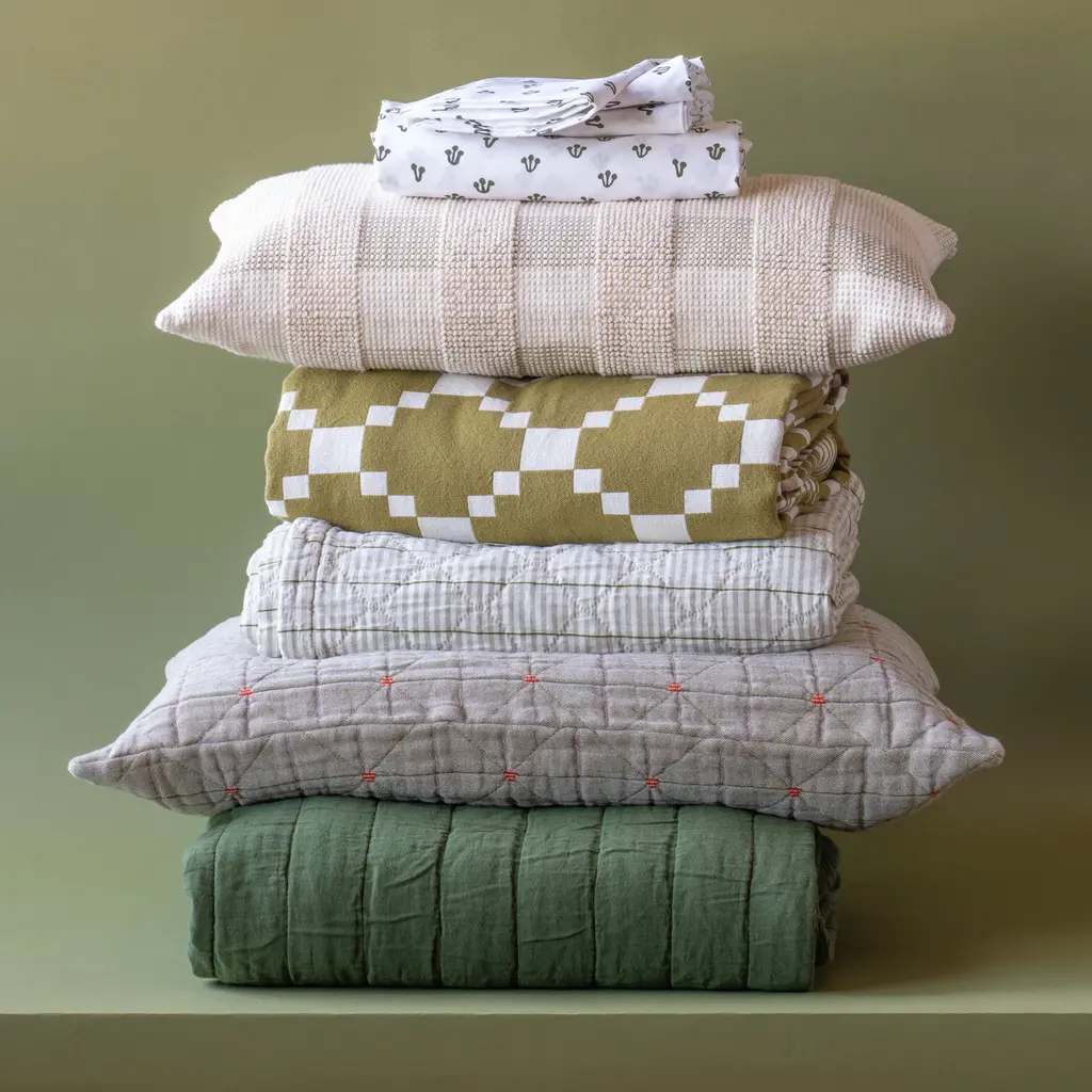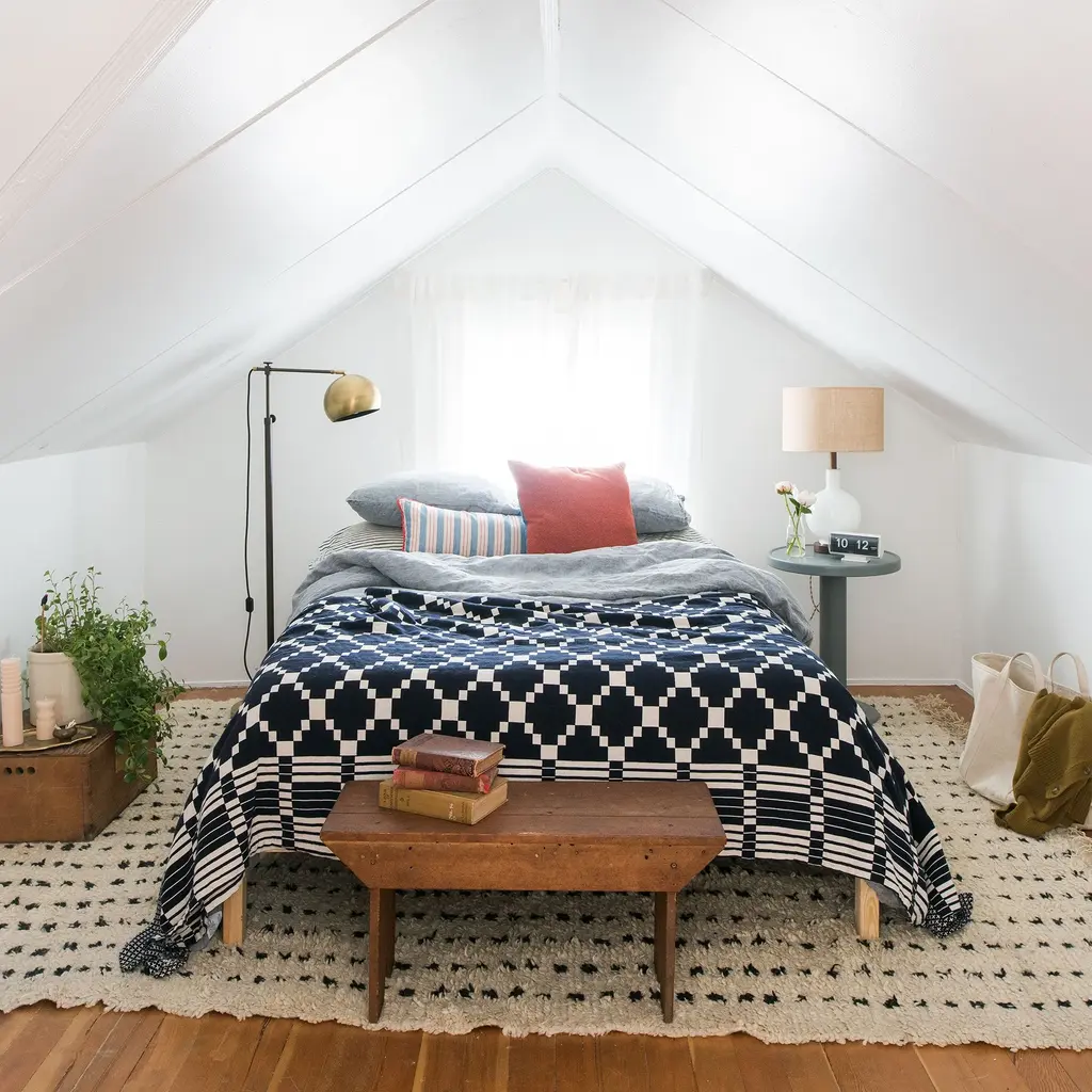 Inspired by a treasured vintage weaving from the early nineteenth century, this heirloom-quality coverlet is crafted from yarn-dyed cotton. A traditional float weaving technique gives it graphic color contrast and geometric patterning, while making it a comfortable weight for layering with other pieces throughout the seasons. Mix and match it with any of our bedding collections.