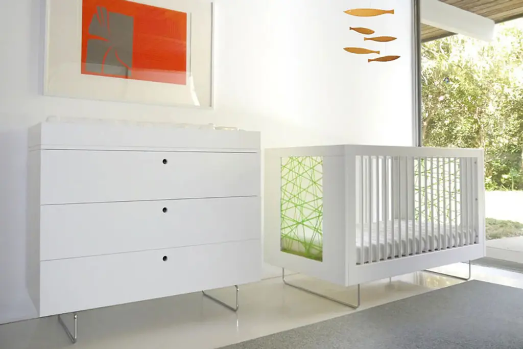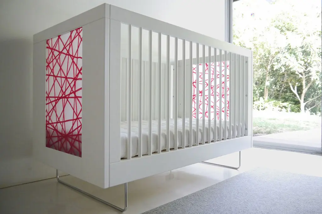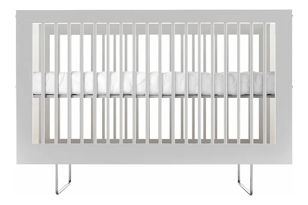 Welcome your newest addition in style and comfort with the Alto Crib from Spot on Square. This cribs classic European design features and open-ended side for easy access, while on the other side the protective bars provide ample safety for your most precious treasure. Chromed curved legs give the piece a distinct modern flare. The Alto Crib is available in a clean white finish with a variety of decorative translucent side panels. Sleep tight, baby.