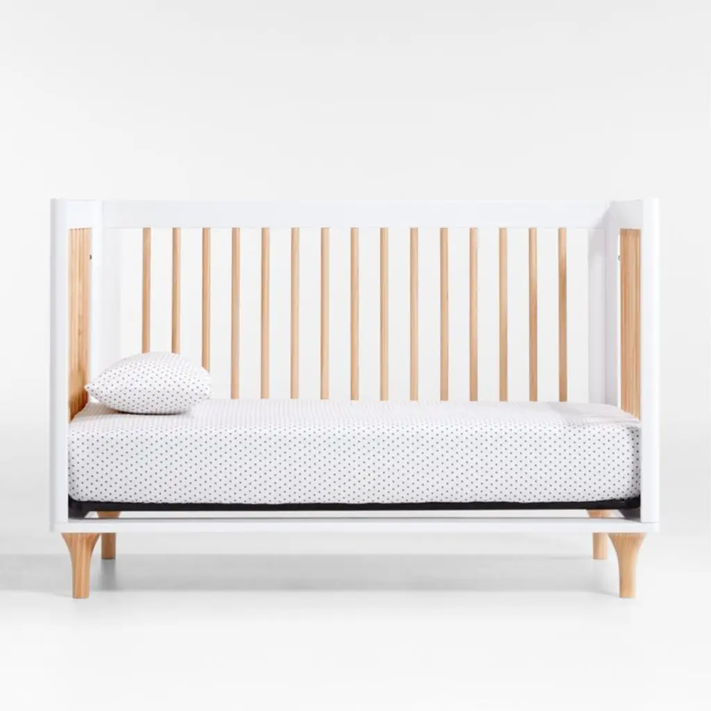 Babyletto Lolly White & Natural Wood 3-In-1 Convertible Baby Crib With Toddler Bed Conversion Kit