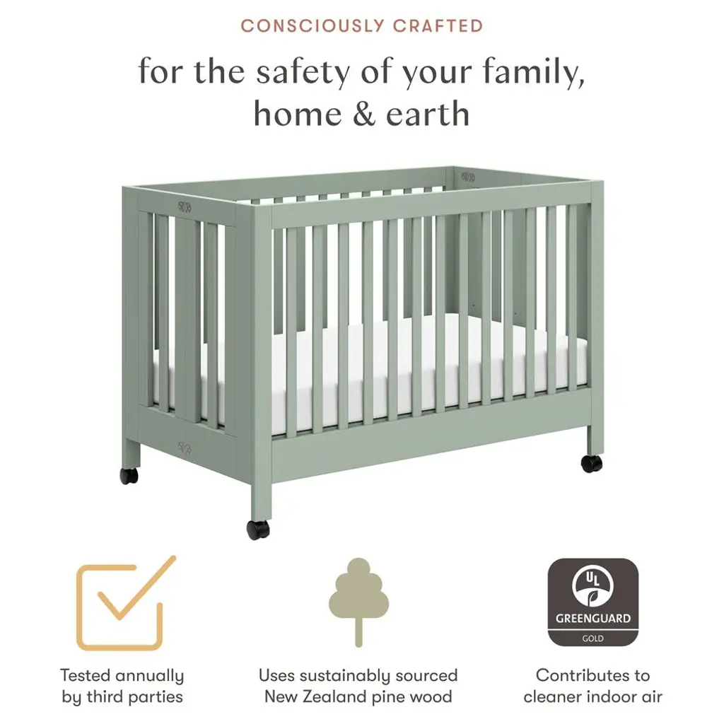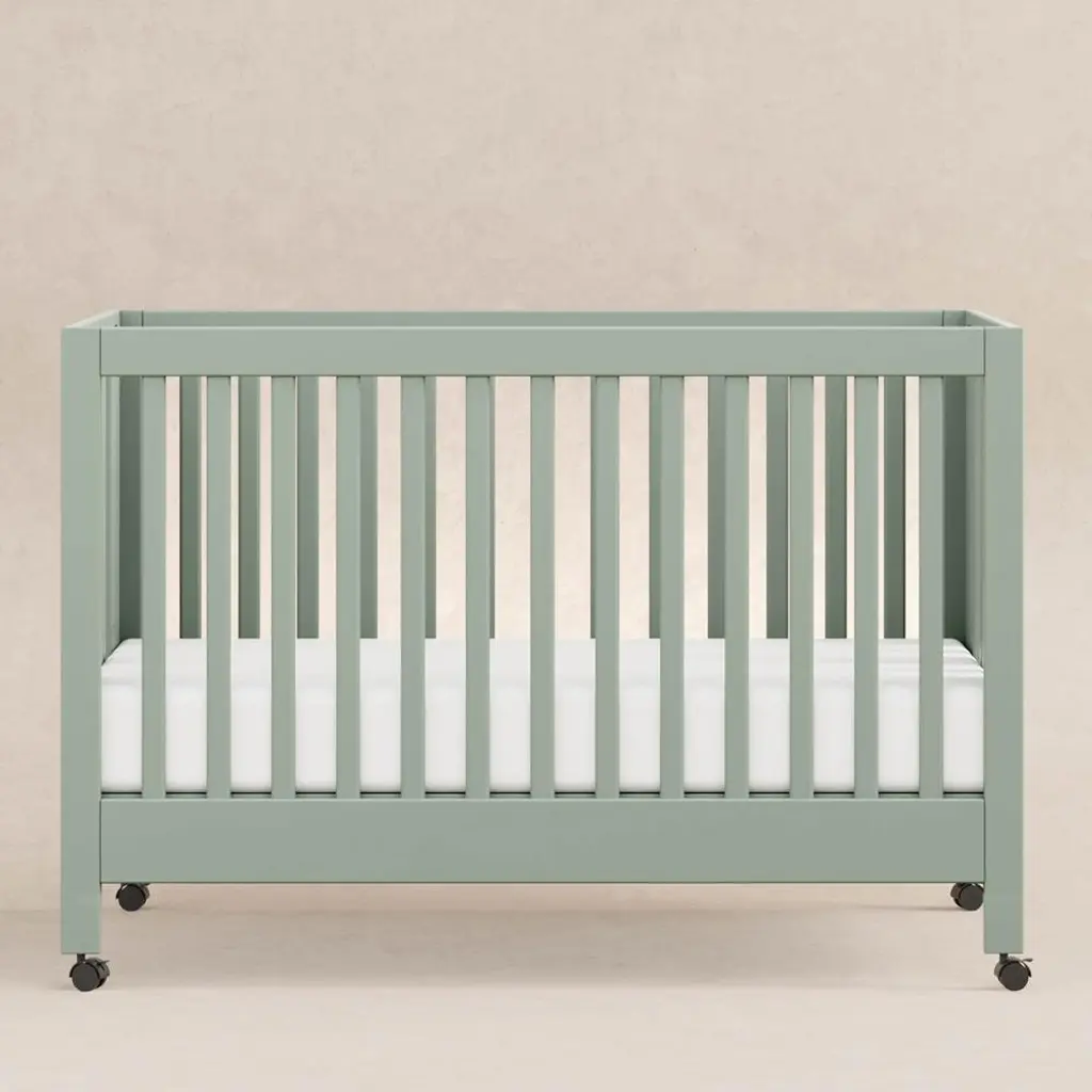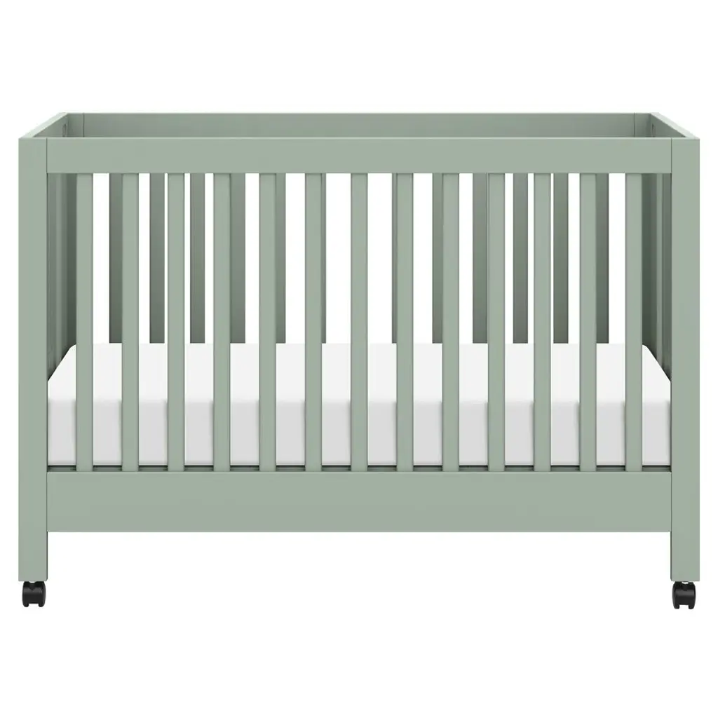 Babyletto Maki Light Sage Wood Full Size Folding Crib With Bed Conversion Kit