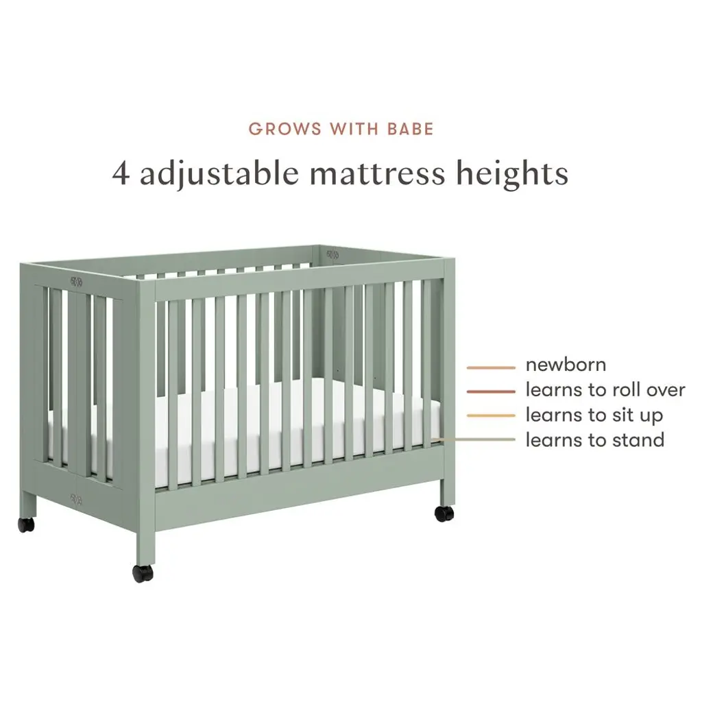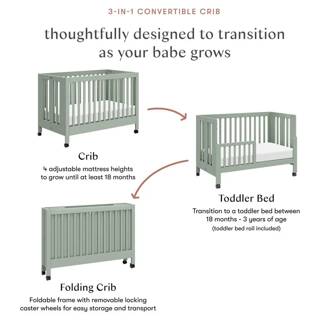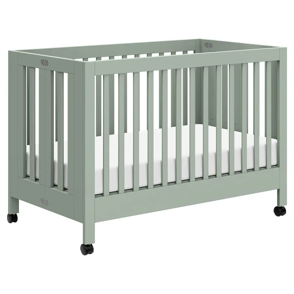 Babyletto Maki Light Sage Wood Full Size Folding Crib With Bed Conversion Kit