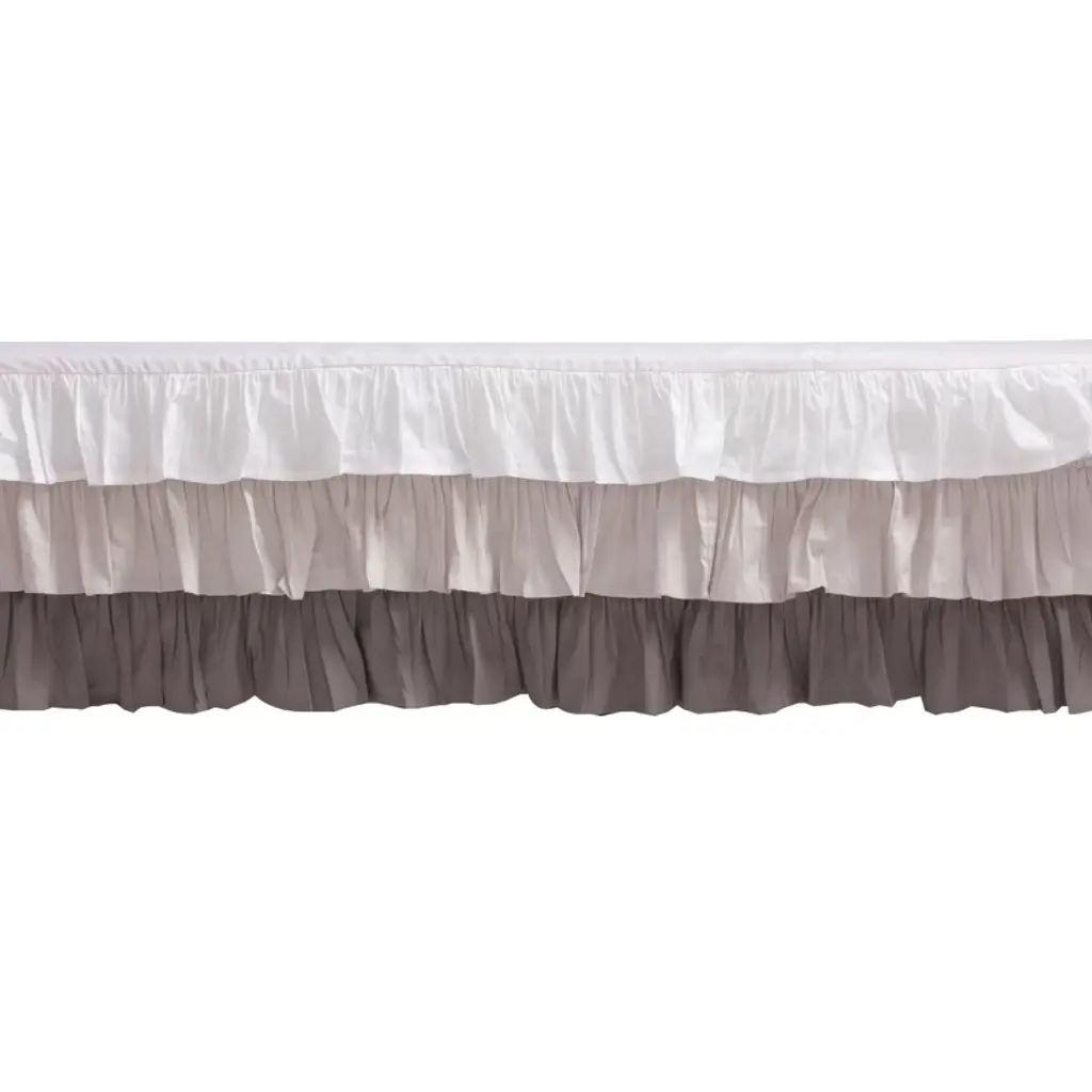 Bacati - 3 Layer Ruffled Crib/toddler Bed Skirt - White/gray/steel