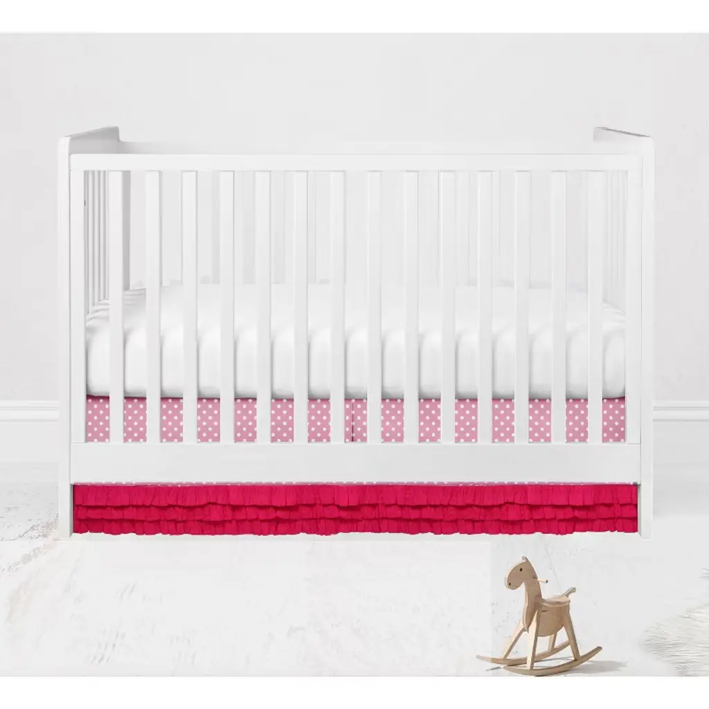 Complete the look of your babys nursery with the Bacati Crib Skirt, designed to add a charming and elegant touch to your crib or toddler bed. Crafted from 100% natural cotton with a soft, breathable feel, this crib skirt features a tailored design with a 13-inch drop, perfect for covering under-crib storage while maintaining a polished, clean look. The classic box pleat adds sophistication to any nursery dcor, while the durable microfiber platform ensures a secure fit. Bacatis crib skirt is OEKO-TEX certified, free from harmful chemicals, and printed with azo-free dyes, ensuring a safe and gentle environment for your baby. Available in Bacatis signature vibrant prints and coordinating with other Bacati nursery collections, this crib skirt brings both style and functionality to your babys room. Easy to care for, it is machine washable and designed to withstand everyday use.