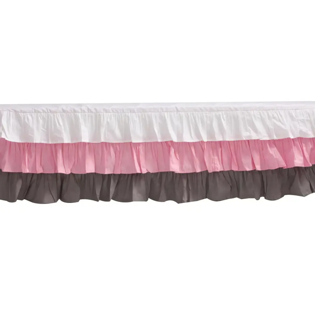 Bacati - 3 Layer Ruffled Crib/toddler Bed Skirt - White/pink/gray