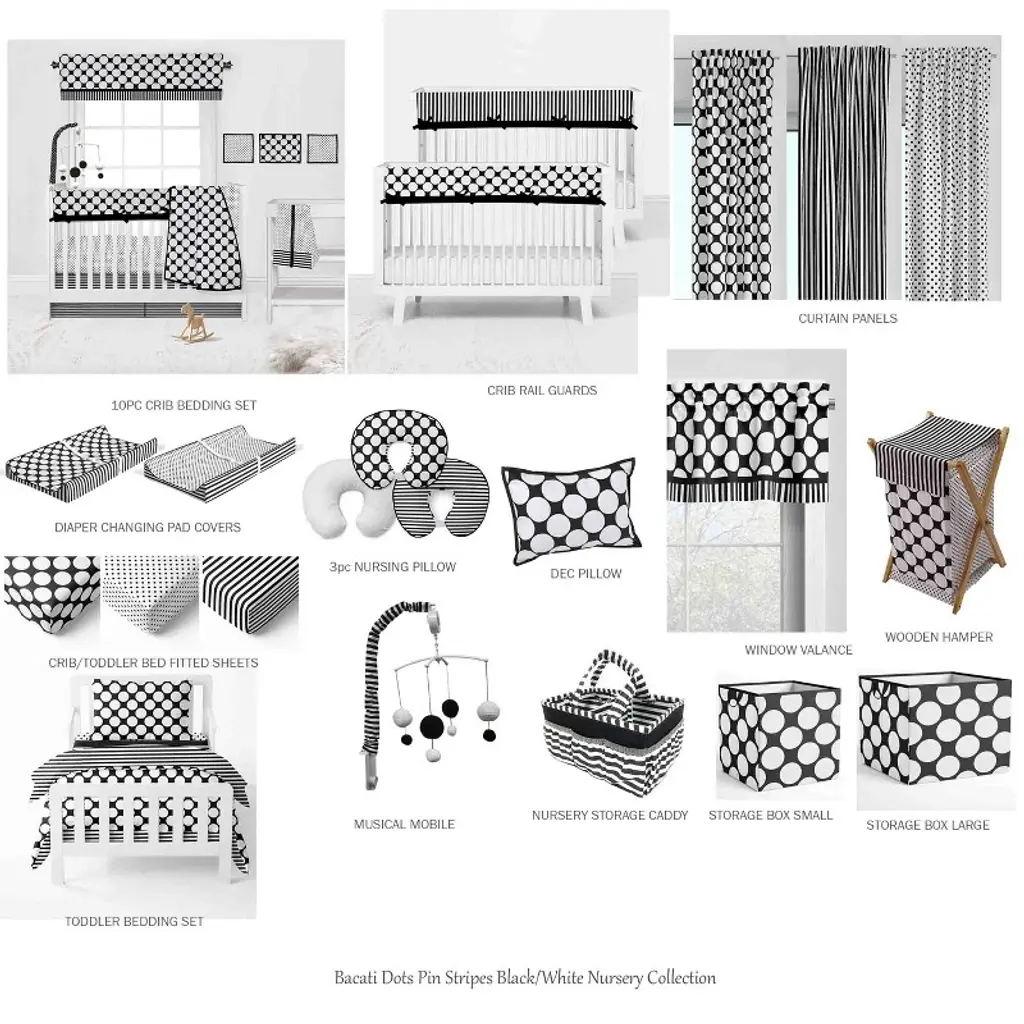 Bacati - Dots Stripes Black/white 3 Pc Crib Bedding Set