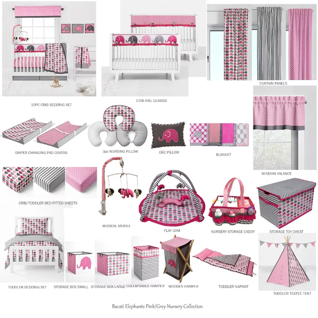 Bacati - Elephants Pink/fuschia/gray 4 Pc Crib Bedding Set With Diaper Stacker