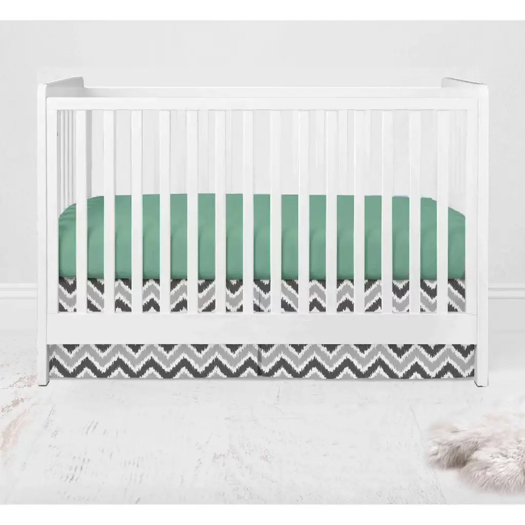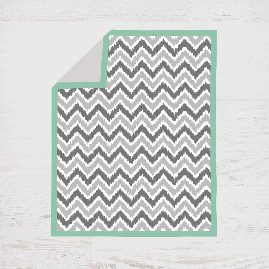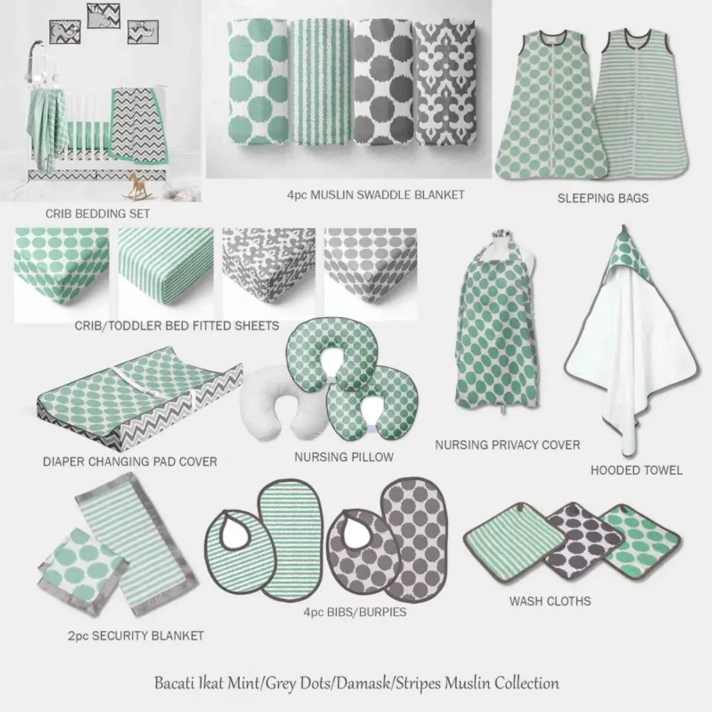 Bacati - Ikat Dots Stripes Mint Grey Neutral 4 Pc Crib Set With Muslin Sleeping Sack