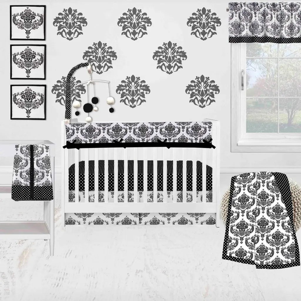 4 pc Crib Set with Wearable Sleeping Sack: 100 percent Cotton Muslin Wearable Sleeping Sack, Cotton Percale Reversible Comforter/Play Mat (33 x 43 inches), 100 percent Cotton Percale Fitted Crib Sheet (1) (52 x 28 x 6 inches), and 100 percent Cotton Percale Crib Skirt/Bed Ruffle (13 inch drop). Welcome your little one with this Bacati 4-piece Crib Set in fun, colorful and signature prints designed in United States by Experienced Designers. This nursery crib bedding set is easy care and provides the comfort your baby needs. All Fabrics used in making this bedding are Super soft Breathable 100 percent Cotton Muslin and Percale Fabrics in signature Bacati - prints and filled with lofty polyester where needed. There are many other cordinating accessories to purchase separately in this Bacati bedding collection. Sleep Safely, Little One : When putting baby to sleep, Bare is Best in the crib. Use a firm, tight-fitting mattress and remove pillows, quilts, comforters, toys and other soft items. We made it better so you can feel better.