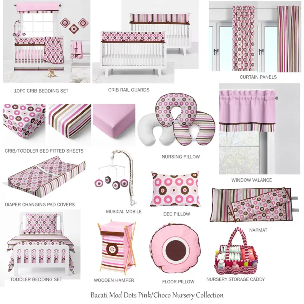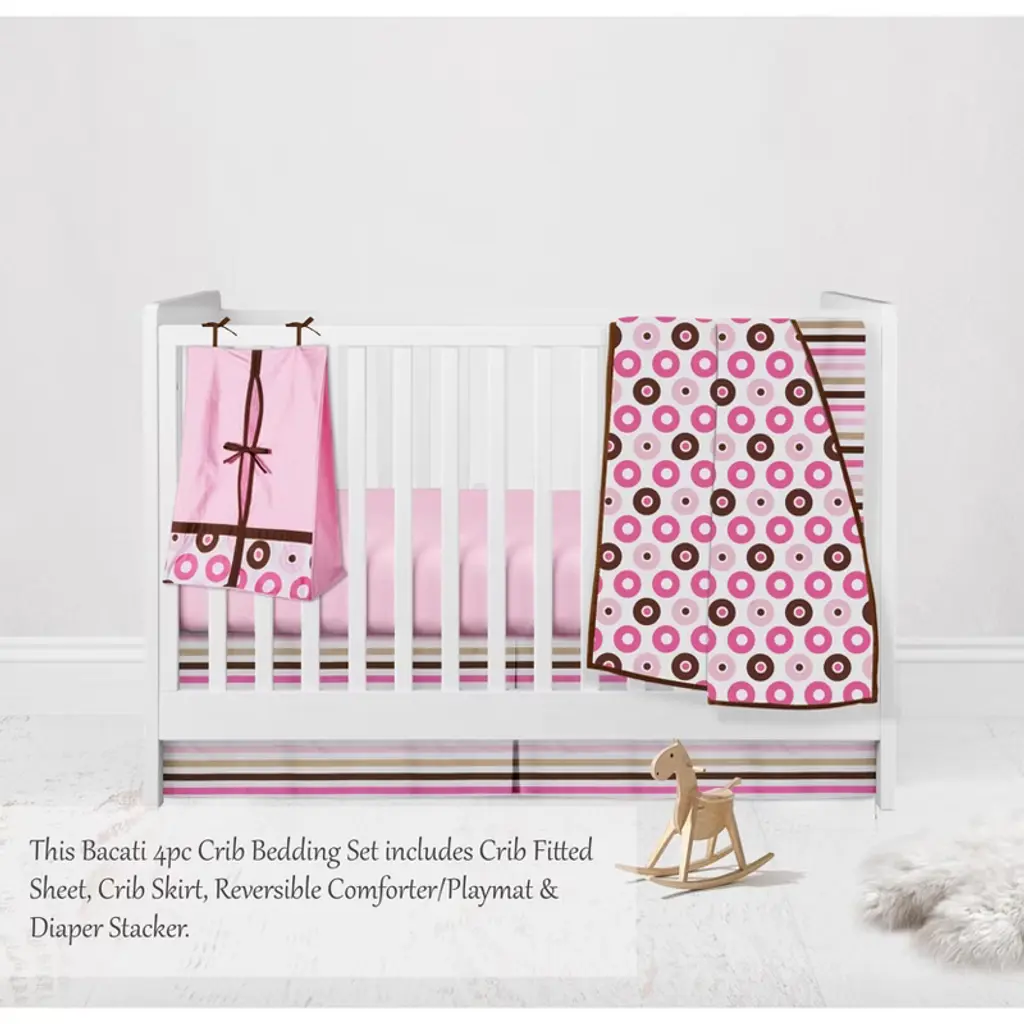 Bacati - Mod Dots Stripes Pink Fuschia Beige Chocolate 4 Pc Crib Bedding Set With Diaper Stacker