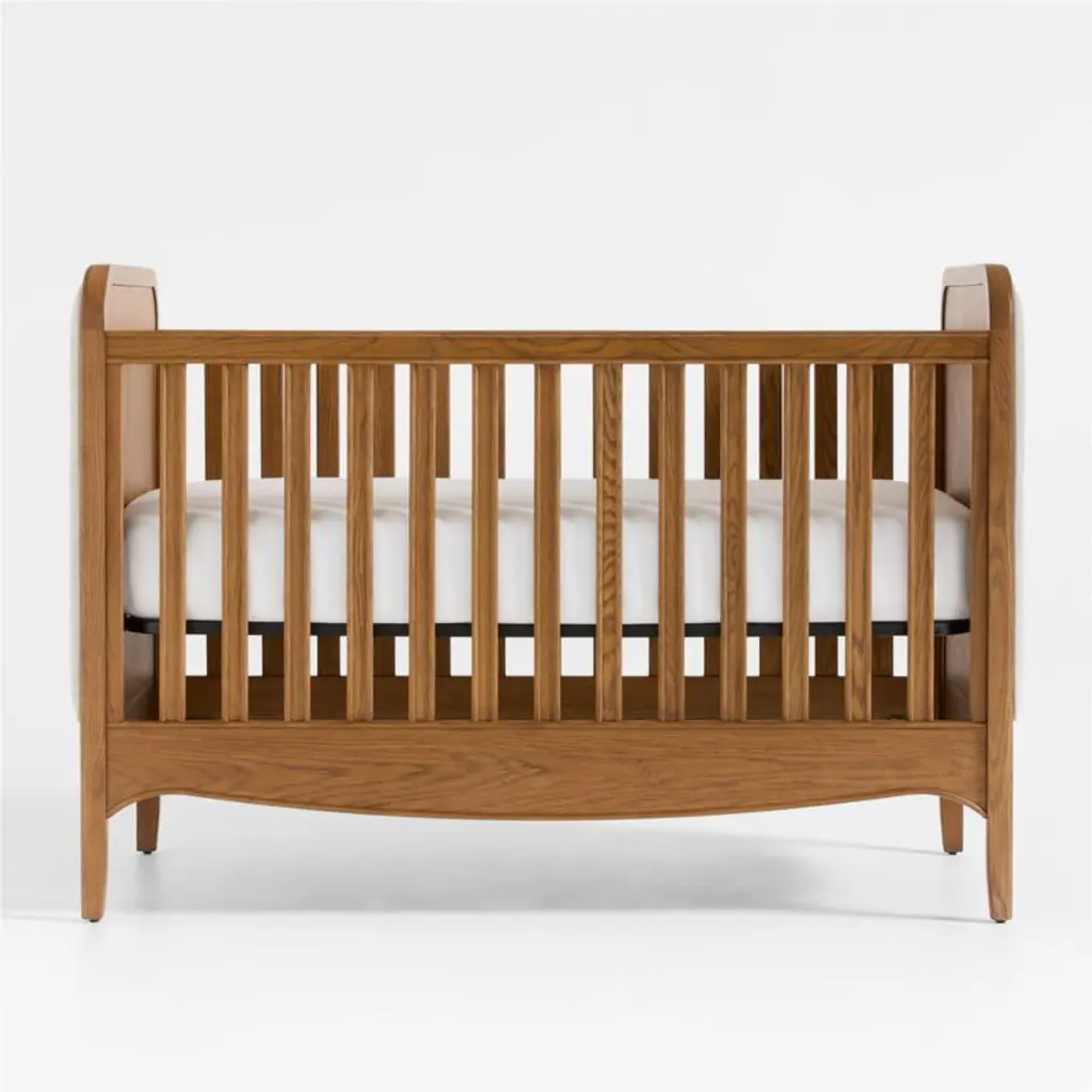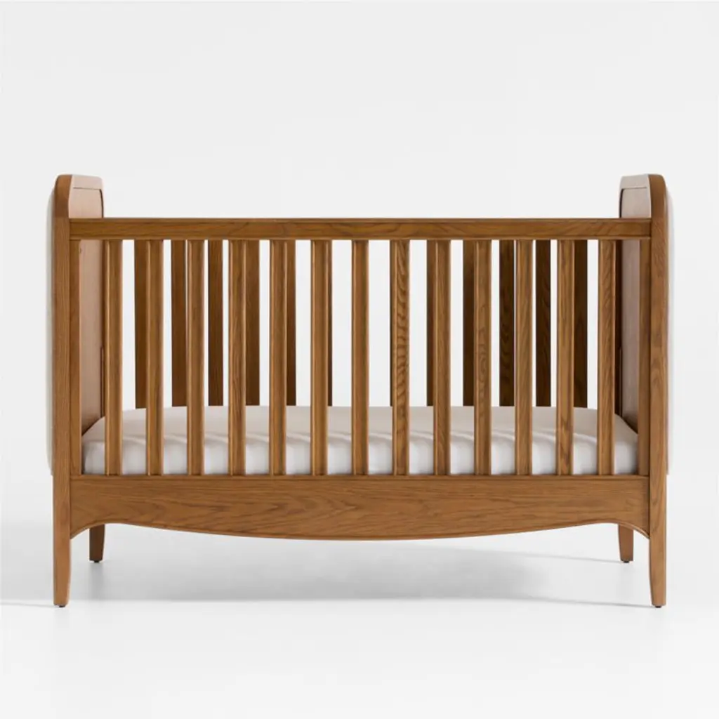 All nursery life revolves around the criband designer Jake Arnold has created one that's centerpiece-worthy. Crafted of oak with a wire-brushed barley finish, our Bacton crib has all the warm, solid presence of an heirloom piece, with linen-blend upholstered side panels, curved corners and a gentle swoop along the bottom. While it's a beautiful focal point in a room, it also partners easily with a wide range of other furniture styles to complete your nursery.For his first-ever baby and kids collection, exclusively at Crate & Kids, interior designer Jake Arnold was inspired by the dreamy childhood spaces he's created for A-list clients.