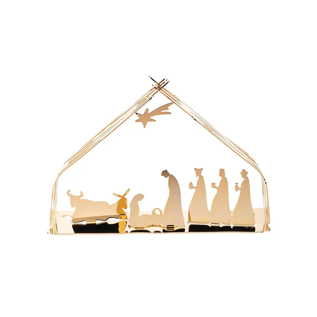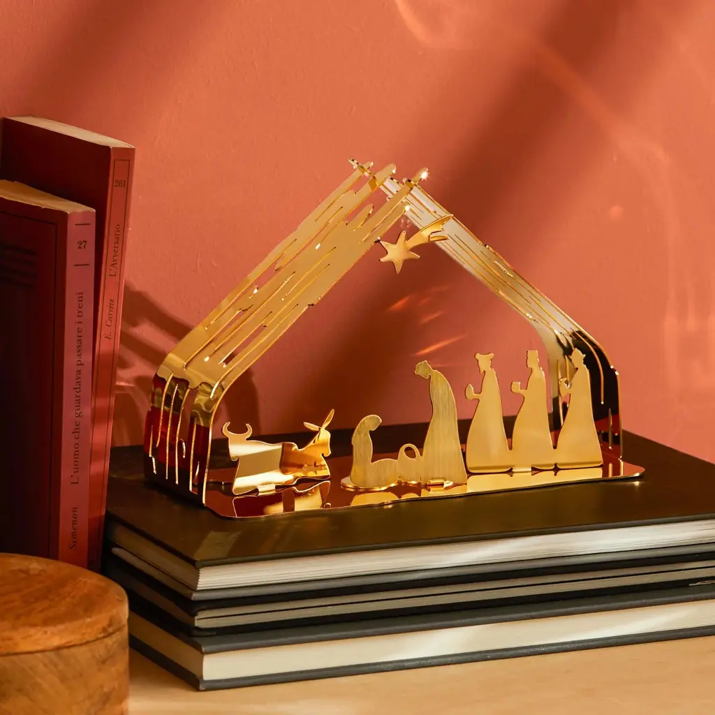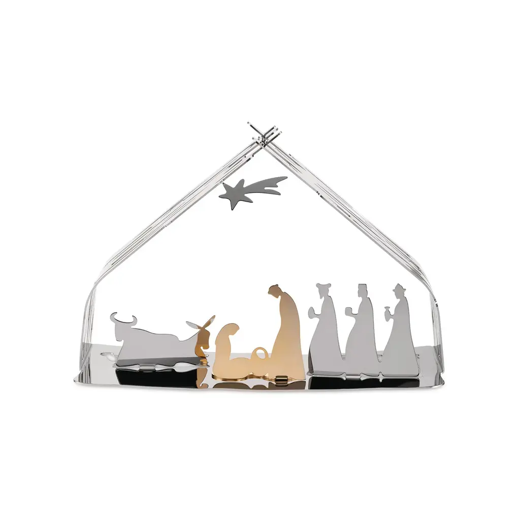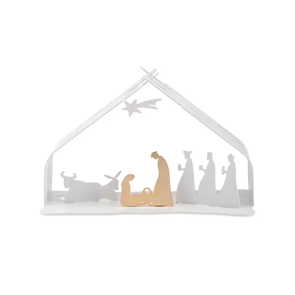 An original take on the birth of Jesus, the Alessi Bark Crib is a minimalist nativity set that will create a celebratory atmosphere in your home for Christmas. Part of the Bark collection designed by Michael Boucquillon and Donia Maaoui for Italian brand Alessi, this set features the series’ signature bark-like texture and patterns. Here, the irregular shapes that remind of tree trunks form the roof and walls of the stable. Made in Italy from high-grade 18/10 stainless steel, the Bark Crib features miniature figures that include the three kings, a donkey, an ox, and a trailing star at the top. The figures of Mary, Joseph and Jesus are mobile and feature a golden finish or textured surface that sets them apart from the other characters. Perfect as a gift, this minimalist nativity set creates wonderful festive ambience during the holiday season.