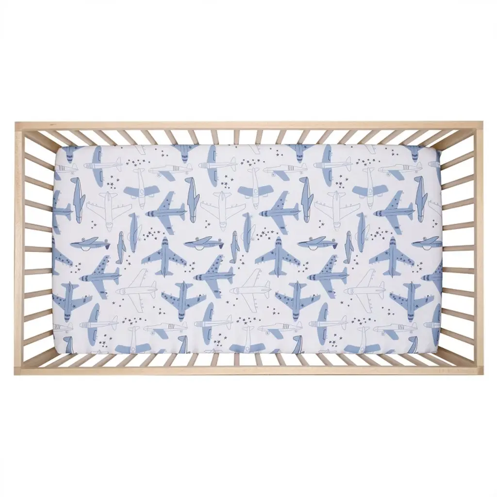 Bedtime Originals Little Aviator Airplane Baby Fitted Crib Sheet - White
