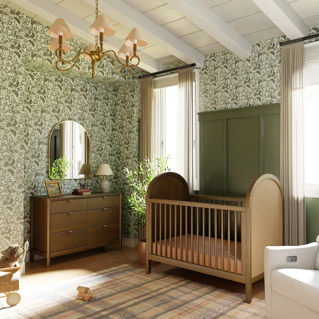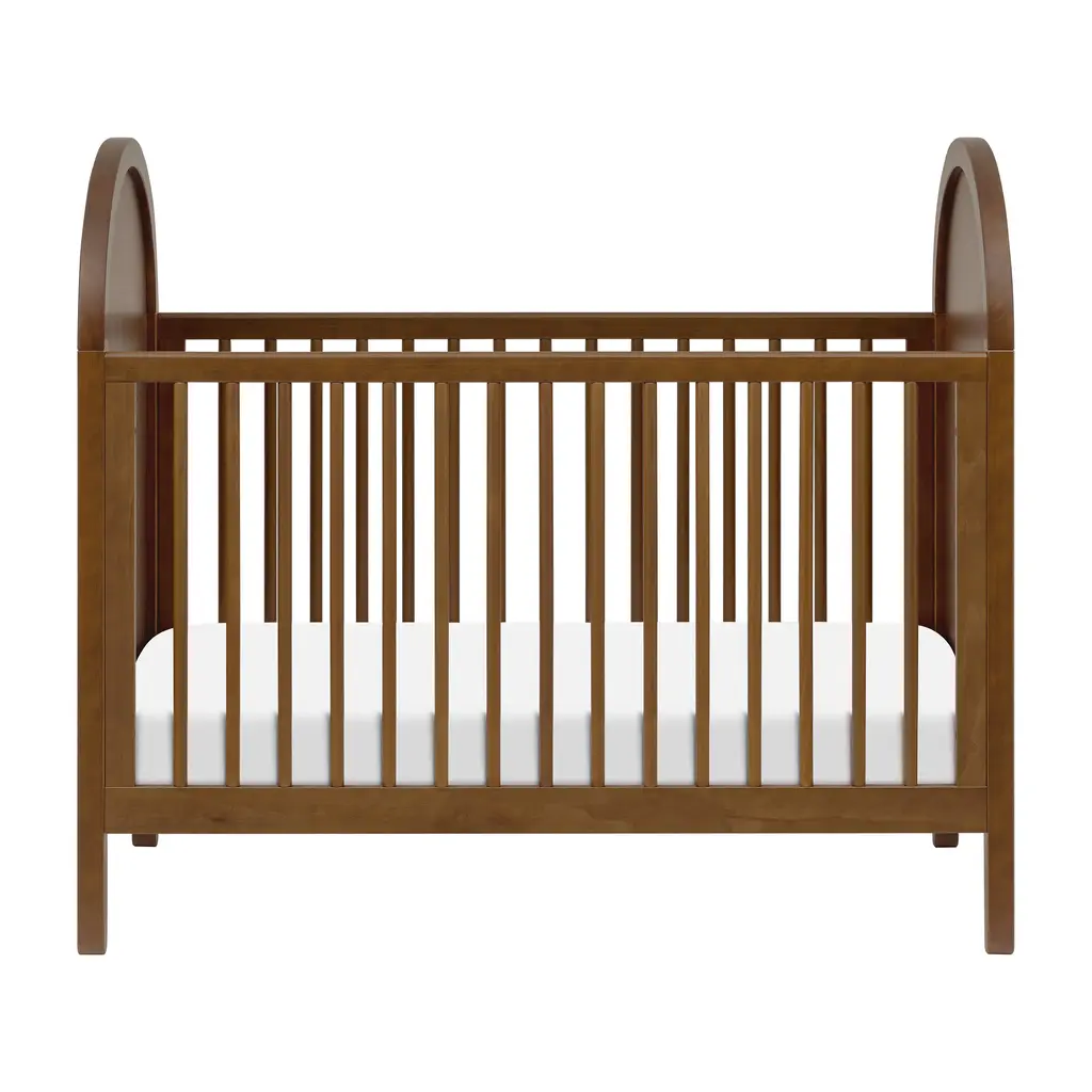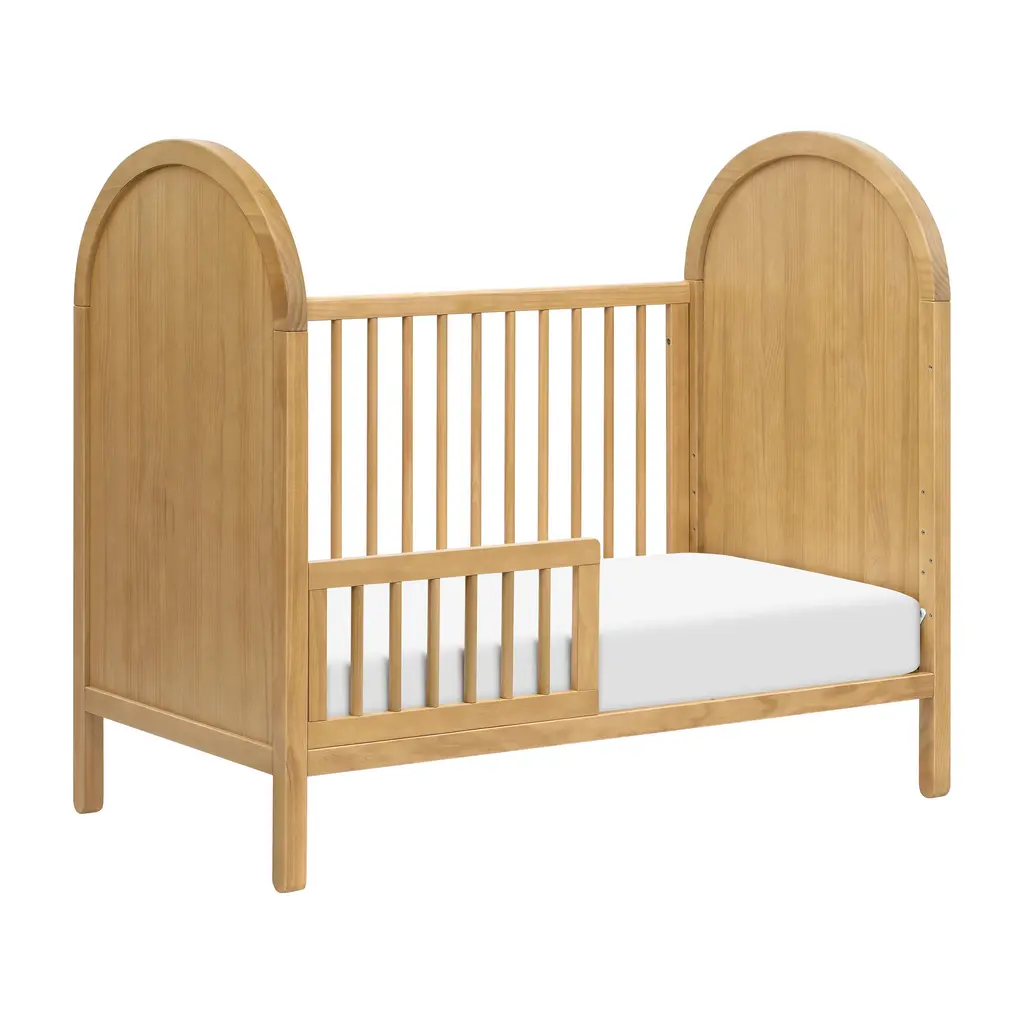 Transform your nursery into a boho oasis with the Bondi 3-in-1 Convertible Crib from Babyletto. Crafted with warm wood tones, playful arched side panels, and curved feet, this crib exudes natural elegance. As your babe grows, the included toddler bed conversion rail ensures longevity. Plus, rest easy knowing it meets GREENGUARD GOLD Certification for low chemical emissions. Highlights