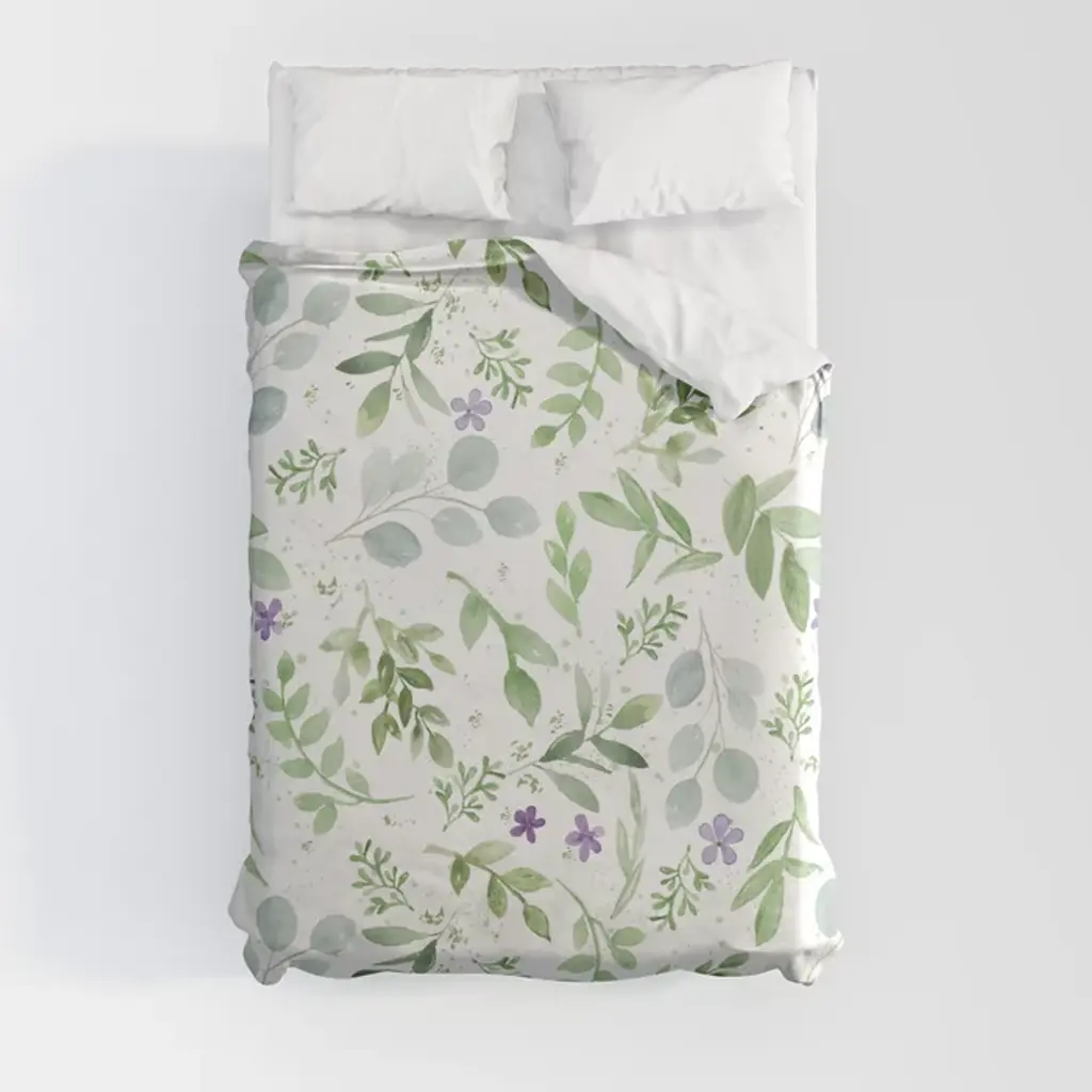 This green and white botanical floral leaf print brushed microfiber sheet fits all standard crib and toddler mattresses and is machine washable for easy care.