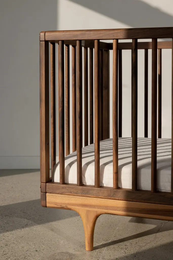 Inspired by the idea that the essential parts of a child’s first living space should be effortless and beautiful, the Caravan Crib is made from solid Ash, White Oak or Black Walnut and designed with longevity and flexibility in mind. The crib converts as is to two different toddler bed styles: a 3-walled toddler bed or a platform-style toddler bed that can be used as seating well beyond the nursery years. It also converts to the Caravan Divan with the Caravan Conversion Kit. Wood is hand-rubbed with our Natural Oil/Wax Finish, a premium, organic plant-based finish. More on finishes here.A perfect marriage of beauty and utility, the Caravan Collection is beloved for its classic forms and versatility. Impeccably crafted from time-tested natural materials, each piece is thoughtfully designed with a commitment to sustainability. Kalon collections are built by small teams of master craftsmen using a mix of traditional and highly technological methods and a 360 degree approach to sustainability.We strongly recommend that conversion kits are purchased at the same time as the crib because of evolving stock and production cycles.