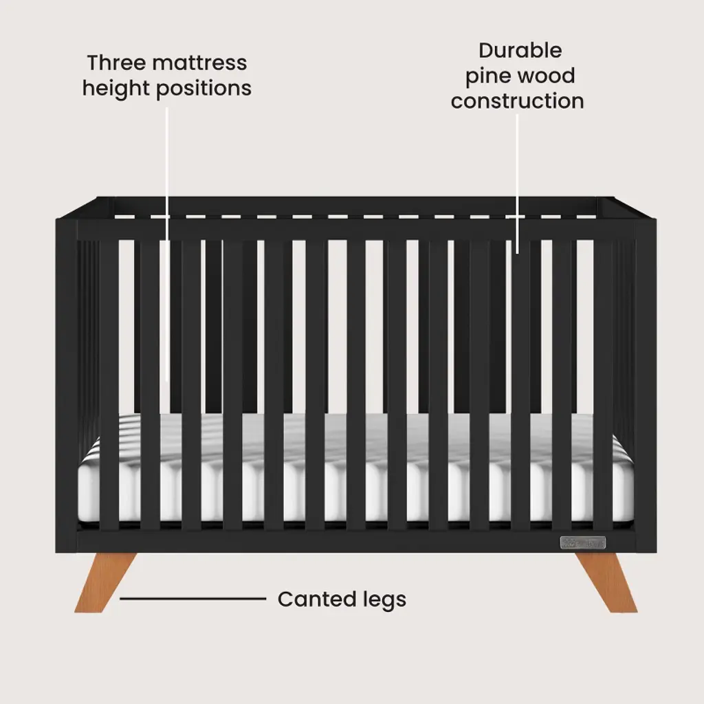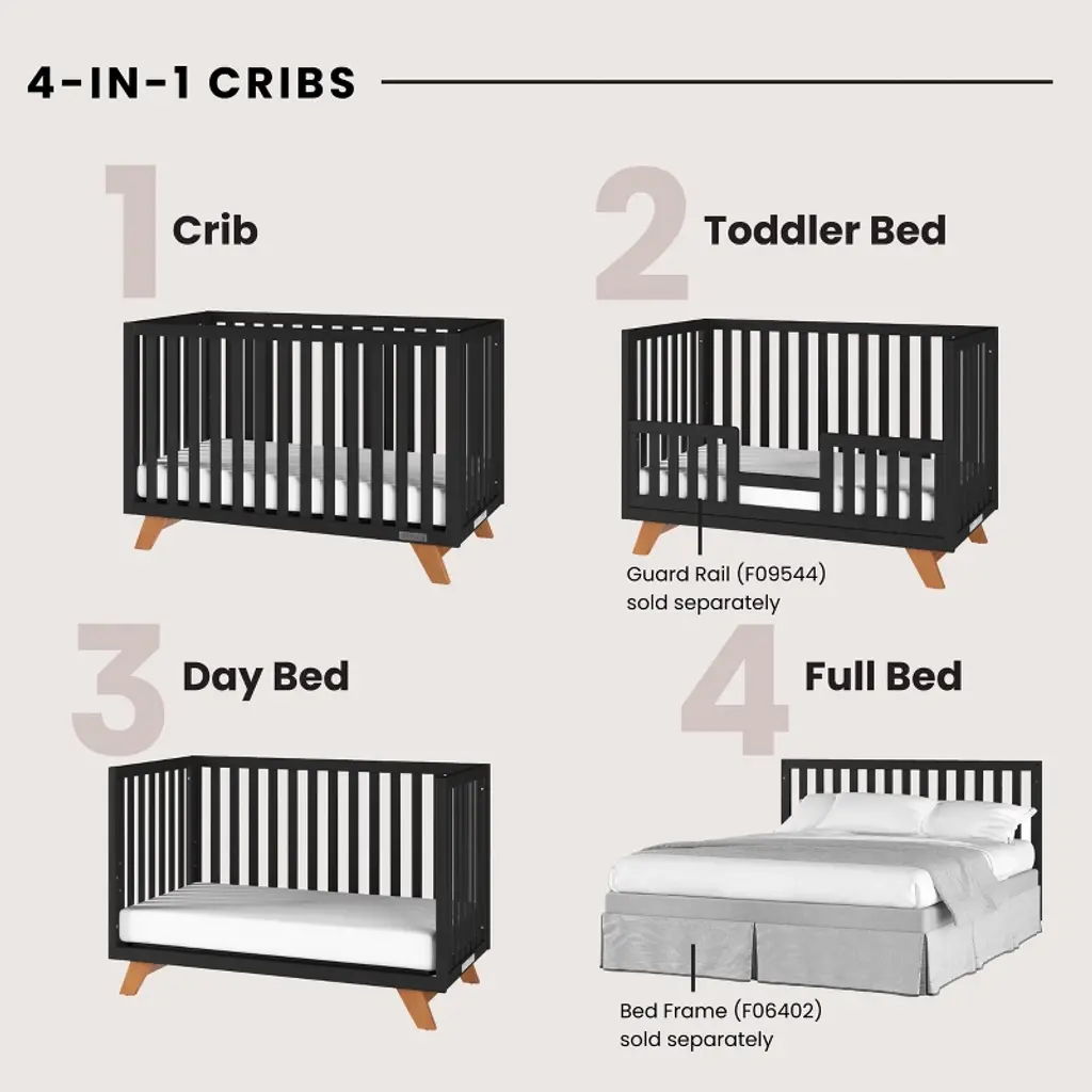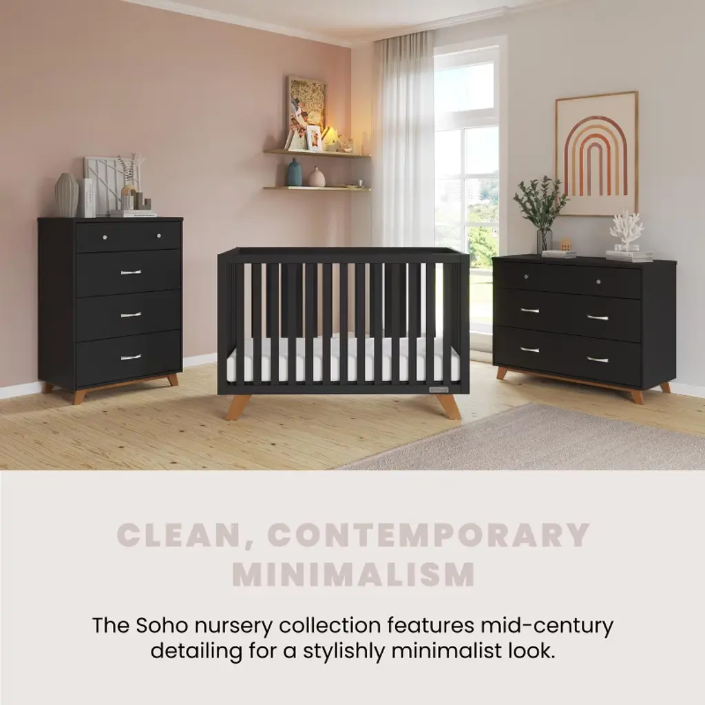Child Craft Soho 4-in-1 Convertible Crib, Converts To Toddler, Day Bed & Full Size Bed, 3 Mattress Positions, Non-toxic, Baby Safe Finish (Ebony)