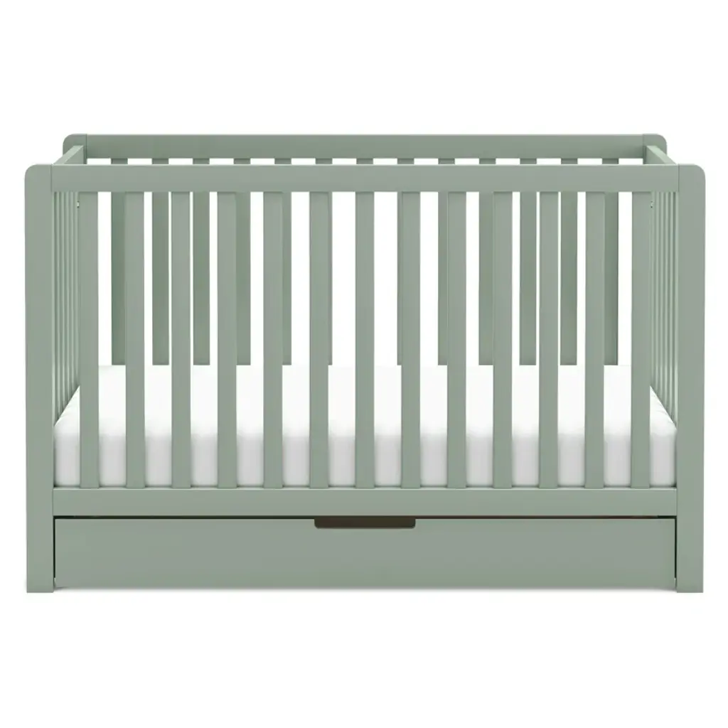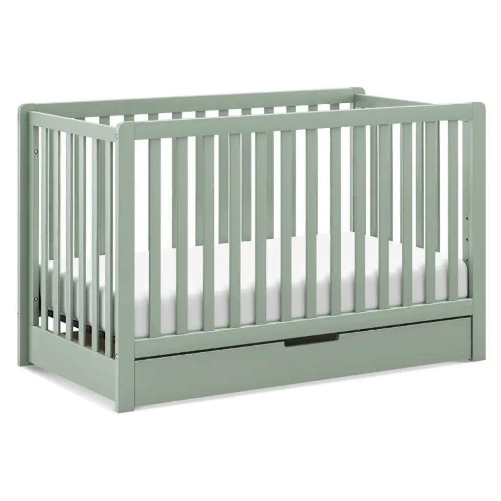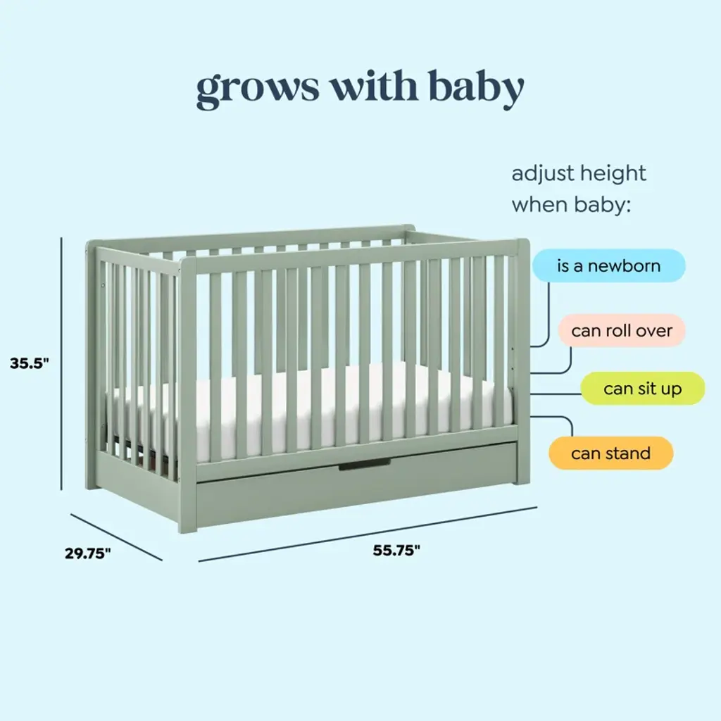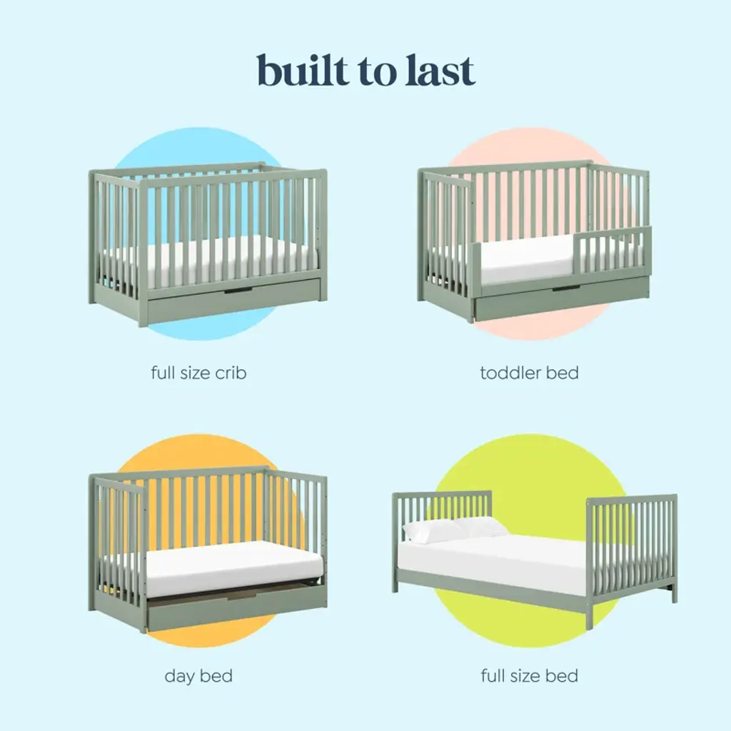 The Carter’s Colby crib with a spacious trundle drawer features clean lines and a spacious, built-in trundle for a beautiful and practical nursery. Converts to a toddler bed, day bed, and full-size bed for use long past the nursery years.