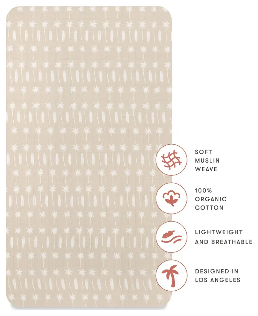 Our crib sheets are consciously crafted from breathable and soft GOTS-certified organic muslin cotton to ensure your baby has the perfect sleeping environment.FEATURES:-100% ORGANIC COTTON: Crafted entirely of preferred cotton fibers grown without chemicals, pesticides, or GMOs.-CERTIFIED GOTS (Global Organic Textile Standards): Meets stringent environmental criteria along the entire supply chain, as well as some of the world''s strictest social responsibility standards.-LIGHTWEIGHT and BREATHABLE: Muslin weave allows for air to flow freely to reduce the risk of overheating, while still keeping your babe cozy.-SOFT and STRONG: Durable muslin cotton withstands countless washes and softens with every cycle. Wash cold and hang or tumble dry low.-SNUG FIT: Designed for a 360 degree fit on a U.S. standard crib / toddler bed mattress (52" x 27.75"). We recommend our Pure by babyletto line of hypoallergenic and GREENGUARD Gold certified crib mattresses.-DESIGNS THAT FEEL LIKE YOU: Lovingly designed by Clementine Kids for babyletto to bring art that inspires and soothes to your nursery.