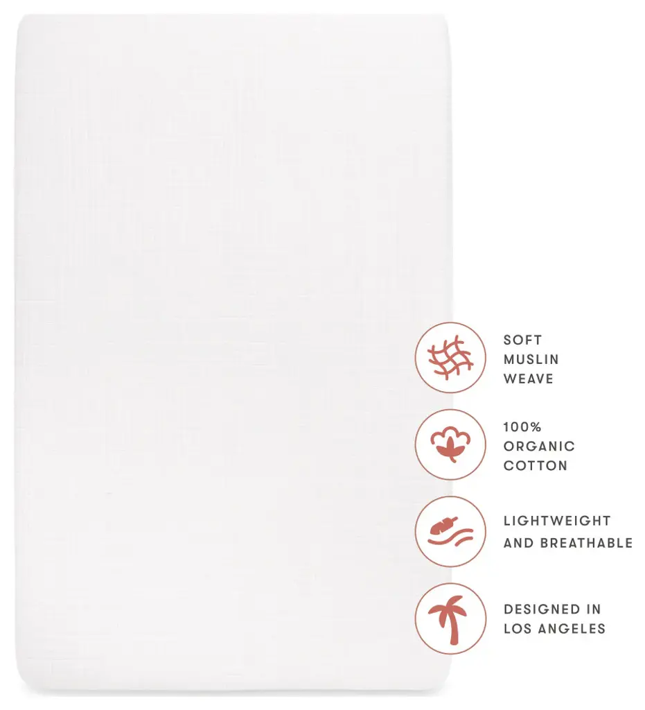 Our crib sheets are consciously crafted from breathable and soft GOTS-certified organic muslin cotton to ensure your baby has the perfect sleeping environment.FEATURES:-100% ORGANIC COTTON: Crafted entirely of preferred cotton fibers grown without chemicals, pesticides, or GMOs. -CERTIFIED GOTS (Global Organic Textile Standards): Meets stringent environmental criteria along the entire supply chain, as well as some of the world''s strictest social responsibility standards. -LIGHTWEIGHT and BREATHABLE: Muslin weave allows for air to flow freely to reduce the risk of overheating, while still keeping your babe cozy.-SOFT and STRONG: Durable muslin cotton withstands countless washes and softens with every cycle. Wash cold and hang or tumble dry low. -SNUG FIT: Designed for a 360-degree fit on a U.S. standard crib / toddler bed mattress (52" x 27.75"). We recommend our Pure by babyletto line of hypoallergenic and GREENGUARD Gold certified crib mattresses.